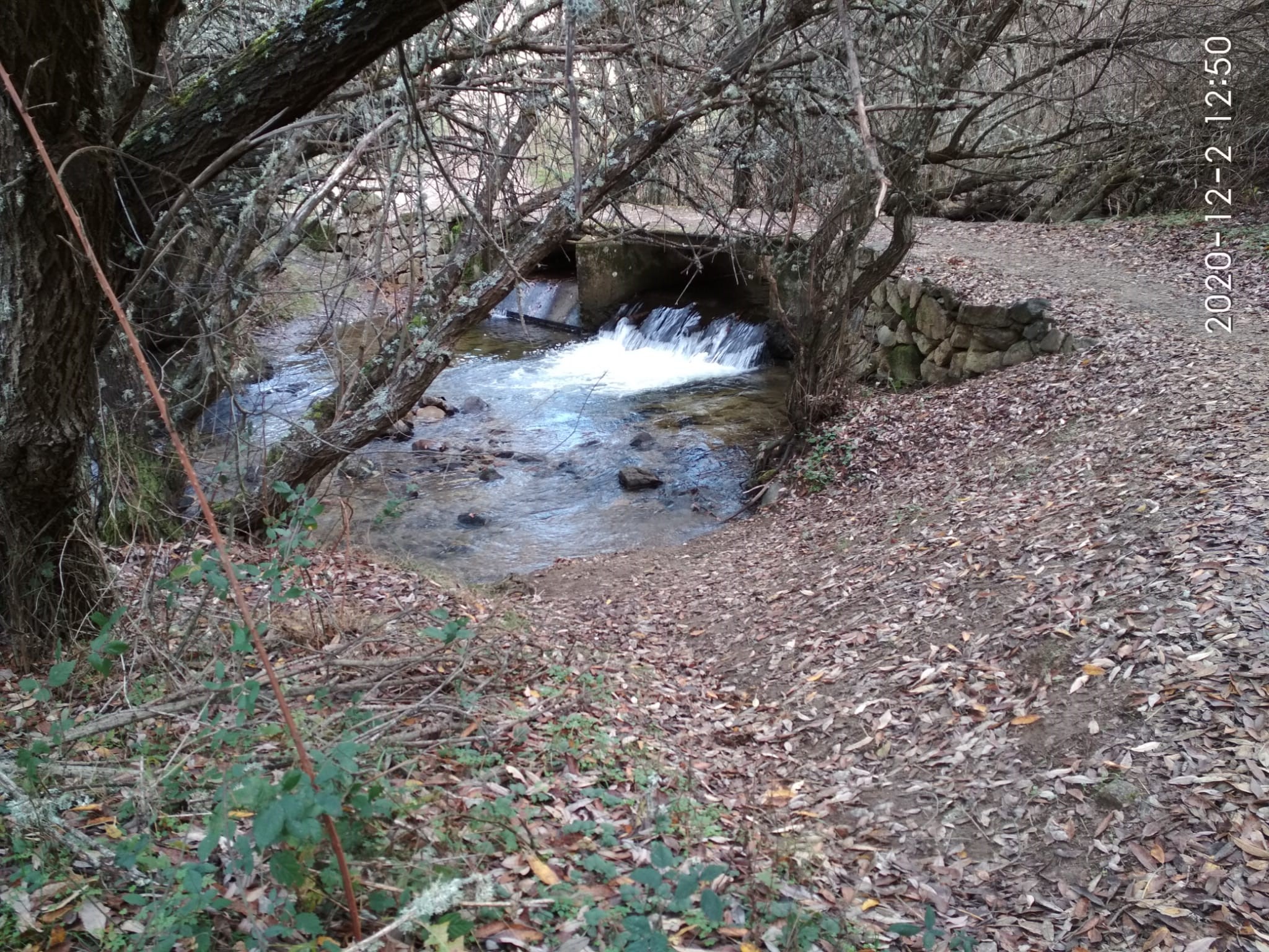 11:05 Después de una suave bajada del terreno nos encontramos diréctamente con el azud. Mientras descansamos revisamos el curioso lugar. Las aguas del río se recogen en algunas pequeñas presas donde se frena su velocidad, se limpian de tierra, ramas y otros deshechos, y se desvían hacia la conducción que las llevará finalmente hasta el Acueducto.