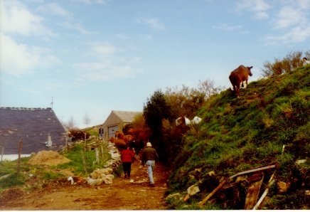conducían un grupo de vacas acompañadas por un tremendo semental que