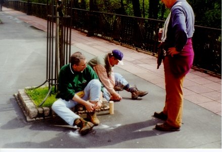 Cerca de Renfe, Angel Rodríguez y Michel, aún rezagados con sus fotos,