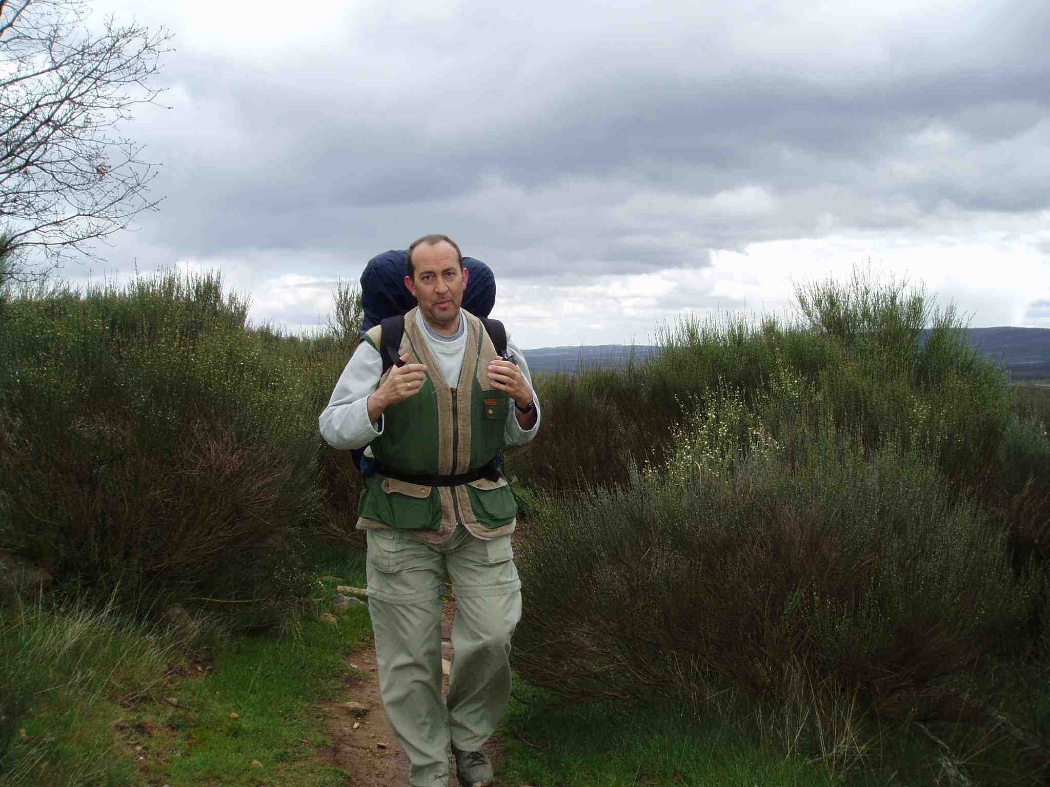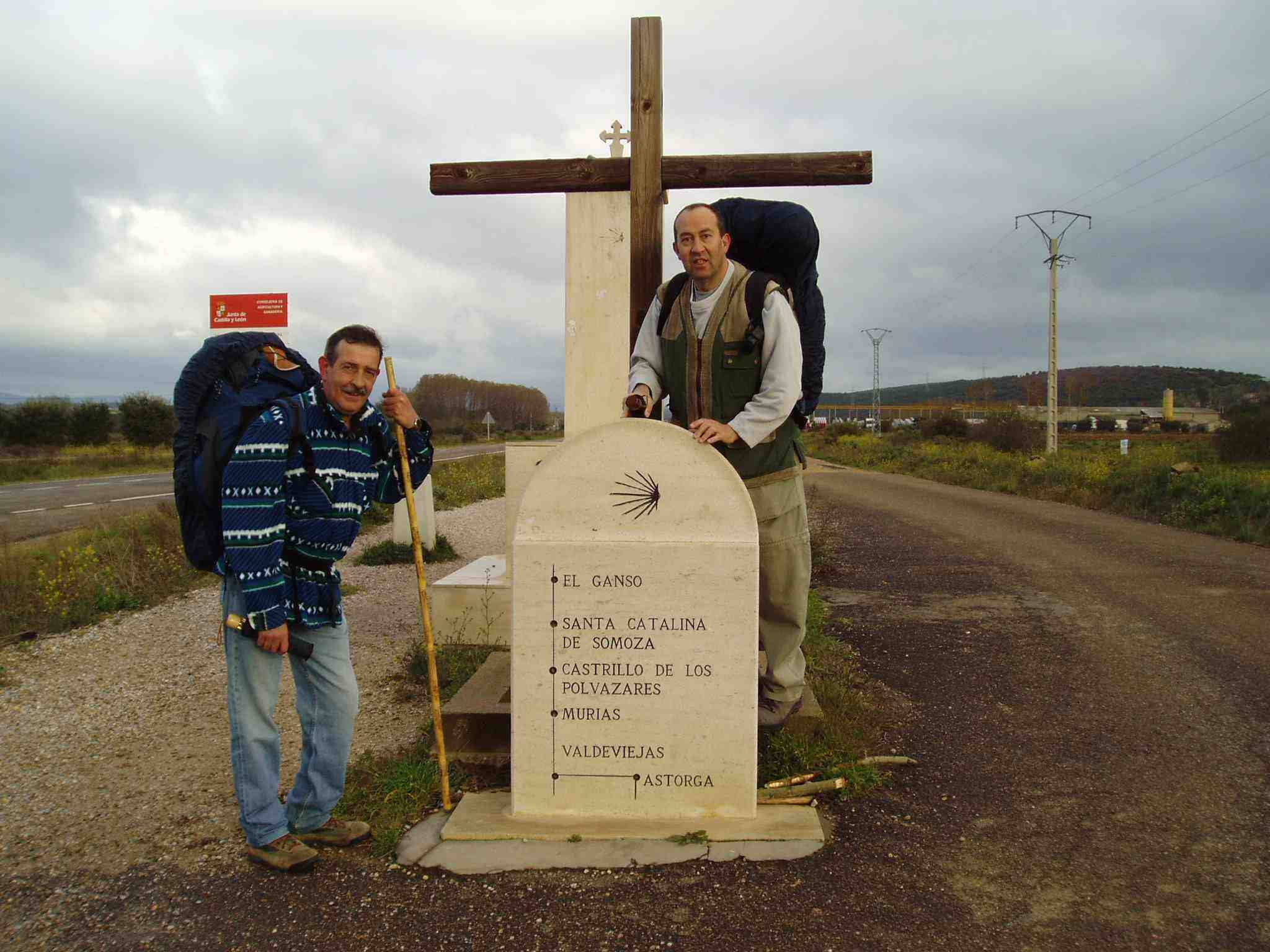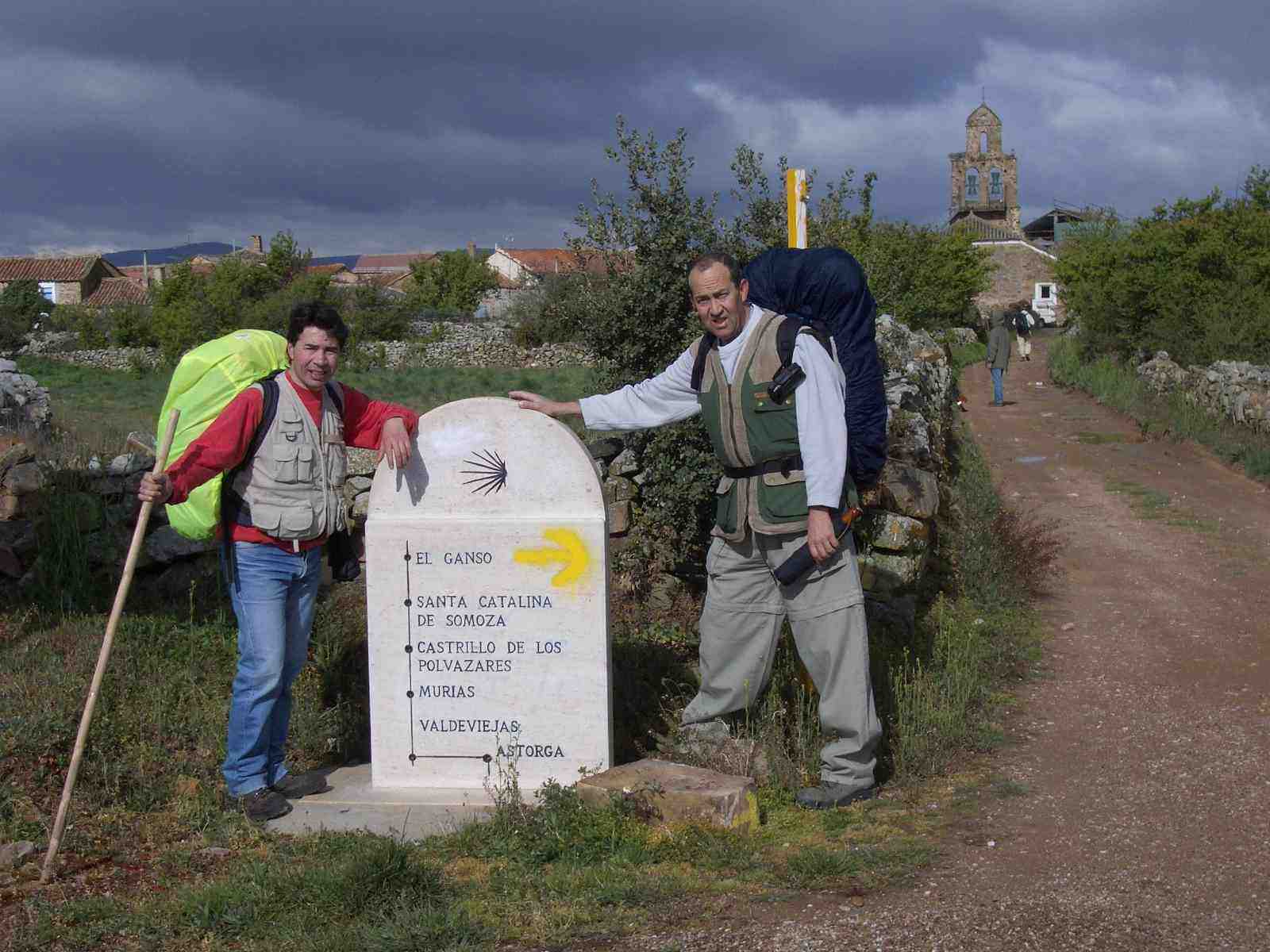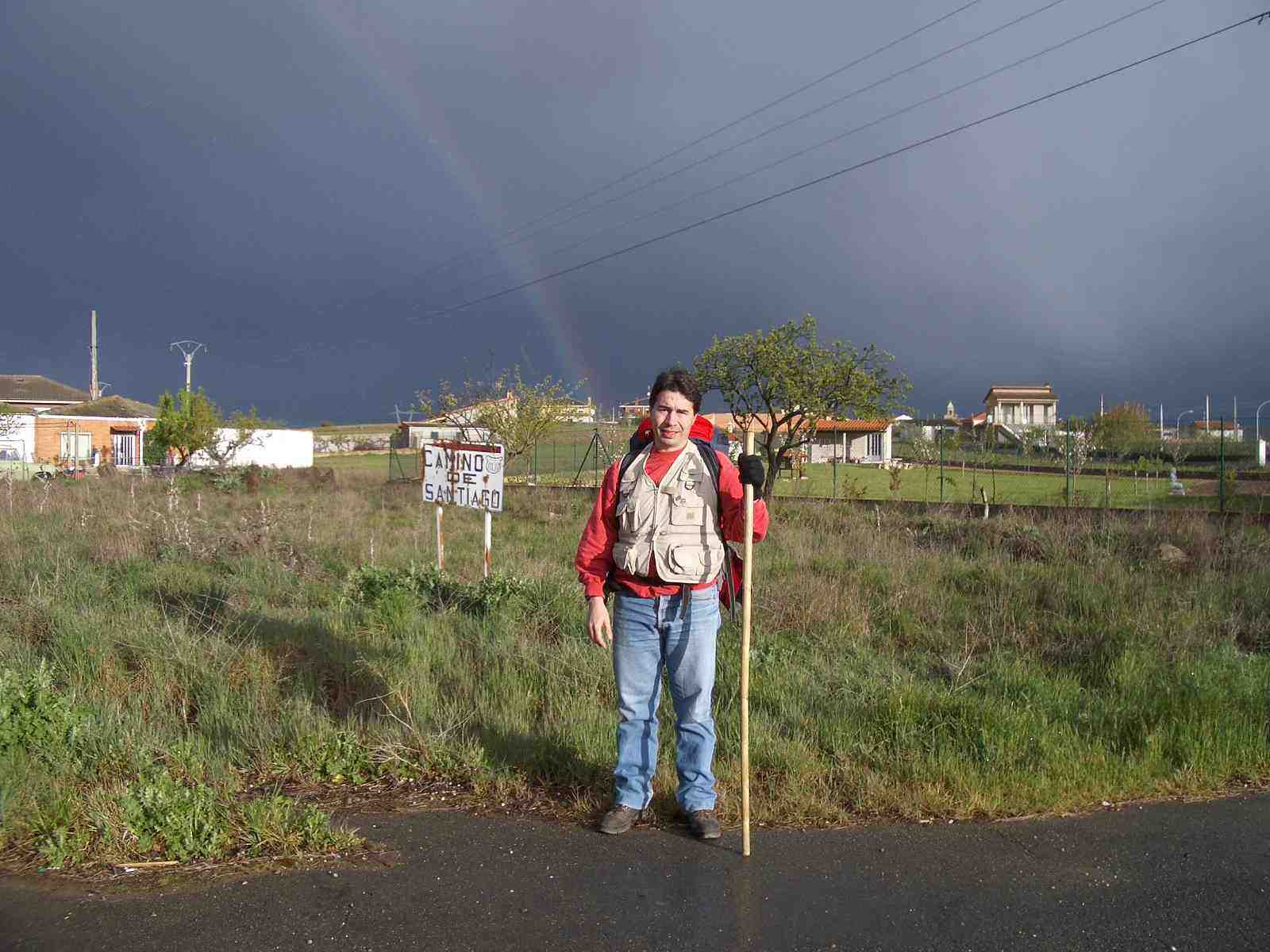 A las 08:15 salen hacia Rabanal. El día es soleado aunque frío. A los lejos se divisan negras nubes. No muy lejos de Astorga, amenazados por la inminente lluvia, Ángel se retrasa con el fín de proteger la mochila con la funda y preparar el paraguas, mientras Primi y Michel, algo más adelantados, observan el gran “arco iris” que se divisa en el cielo. Poco después también ellos paran y preparan la funda de la mochila y sus paraguas. Michel no logra poner la funda en su mochila, por lo que la intercambia con la de Primi, ya que parece más grande. Una vez acoplados, continúan a marcha rápida.