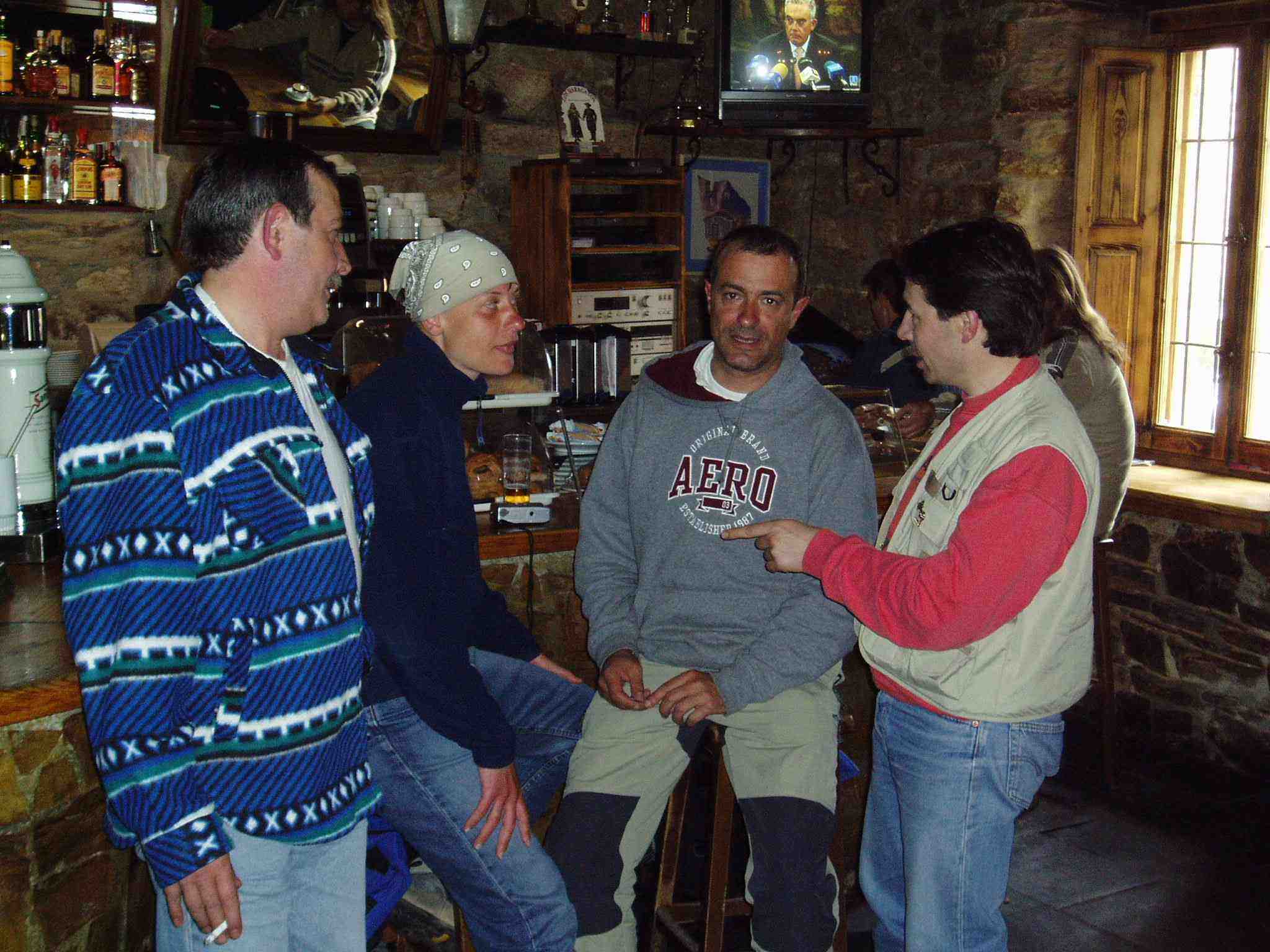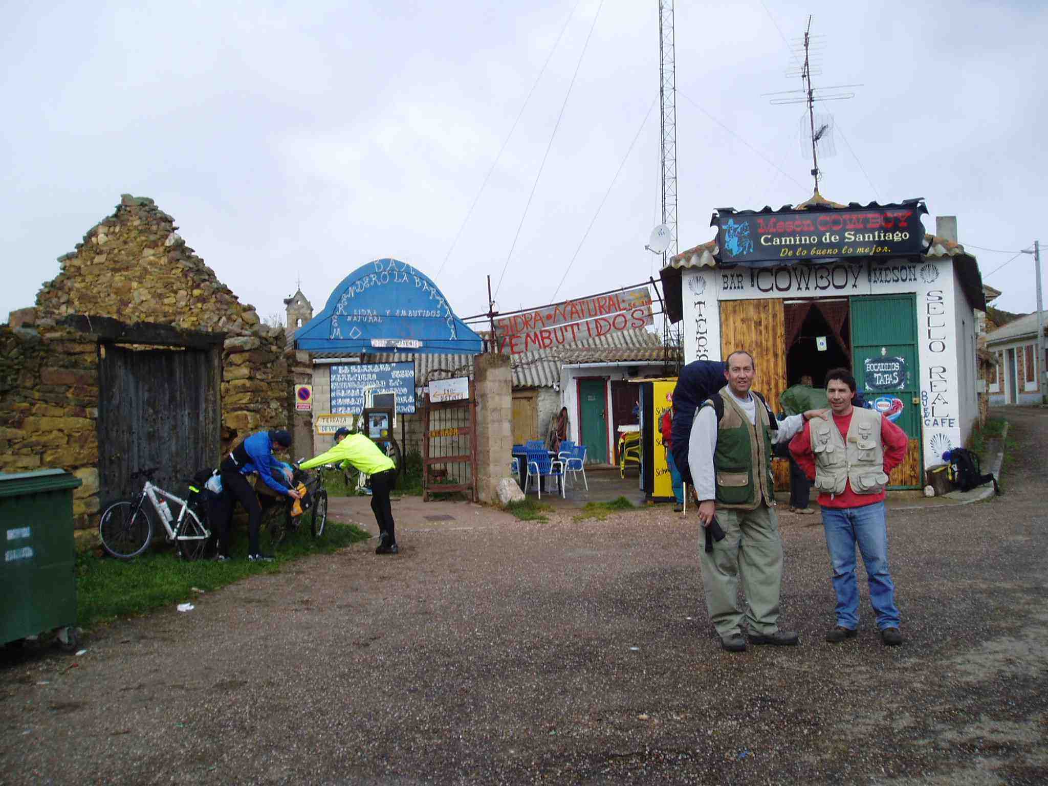 Ángel y Primi se habían acercado hasta un albergue donde una extranjera con pocos ánimos de que se quedara la gente allí les indicó otro alternativo donde por 15 euros tendrían cena, alojamiento y desayuno. Decidieron quedarse allí. Mientras tomaban las consabidas cervezas esperaban a Michel, pendientes de que no fuera a pasarse dada la espesa niebla, la mínima cobertura de móviles y las bajas temperaturas.