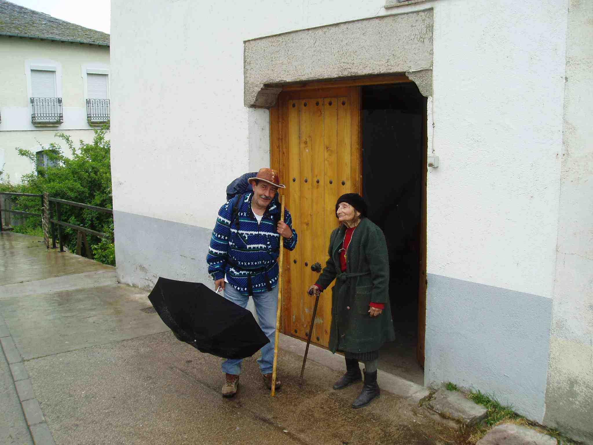 Finalizada la comida los peregrinos van desfilando. Aunque no apetece mucho subir el Cebreiro saben que deben hacerlo. La lluvia, que les ha acompañado toda la mañana,continúa. Michel y Primi vuelven a quedarse rezagados.