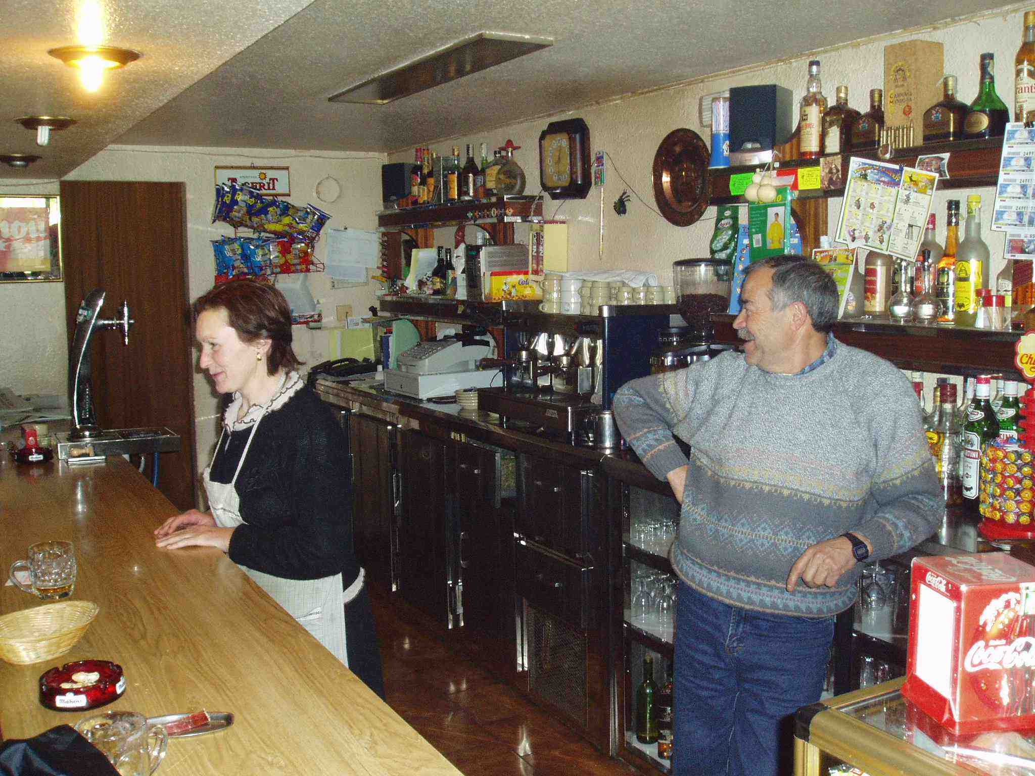 Ya en Trabadelo abandonan el camino para tomarse unas cervezas en el Restaurante Nova Ruta. Las sevillanas van adelantadas por lo que seguramente han pasado de largo. Continúa la lluvia. Mientras toman las cervezas comentan la marcha: casi 12 kilómetros en 2 horas. No está nada mal. Parece que no hay ampollas ni dolores especiales por lo que descansan satisfechos.