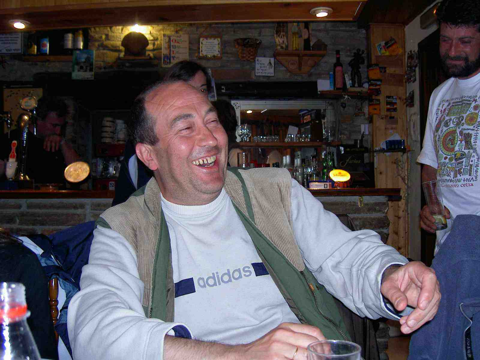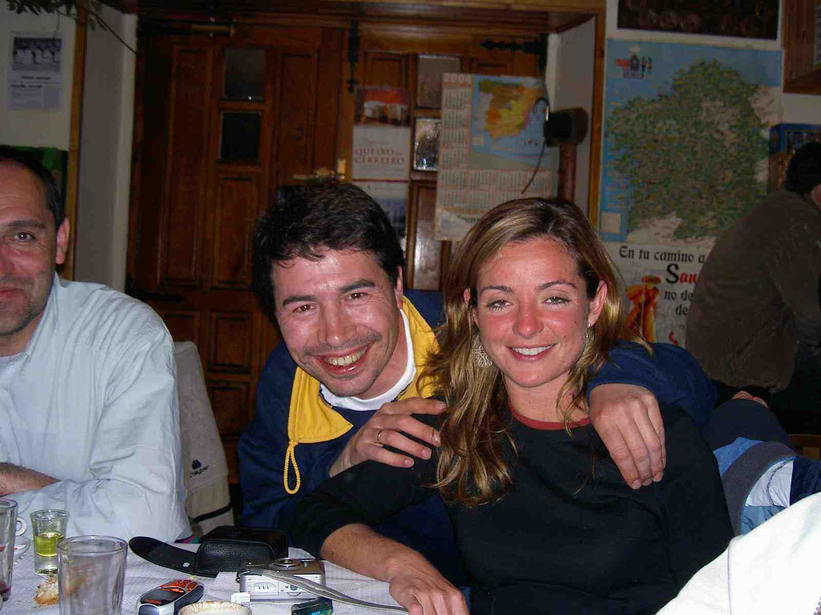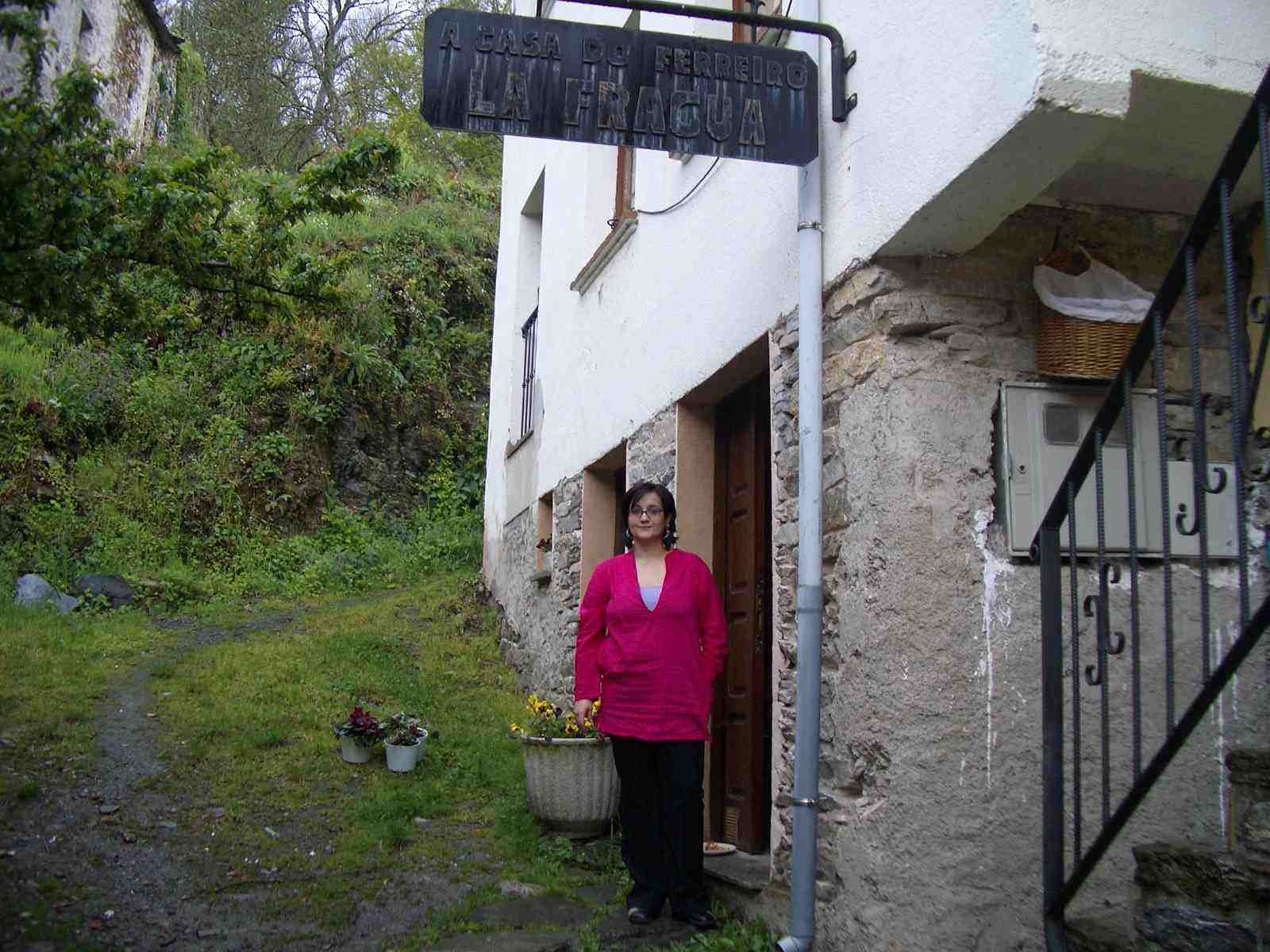 Poco tiempo después continúan la marcha. Luís el Negro, Ángel y Michel, entran rezagados en un nuevo hostal en La Portela mientras Primi y Luís Martín han continuado adelantándose. El dueño, muy amable, les enseña satisfecho las instalaciones. Tiene habitaciones con "jacuzzi", otras con camas enormes y otras con literas para los peregrinos. Mientras toman una cerveza charlan con el matrimonio y su joven y preciosa hija, Sonia. Tendrán que pernoctar allí en alguna ocasión. Cuando Ángel va a tomar una foto, la hija se esconde. A pesar del intento de engaño entre Michel y Ángel para fotografiarla, se les hace imposible. Después de tomar un "elixir" de fabricación casera con endrinas invitados por el dueño se despiden y continúan la marcha.