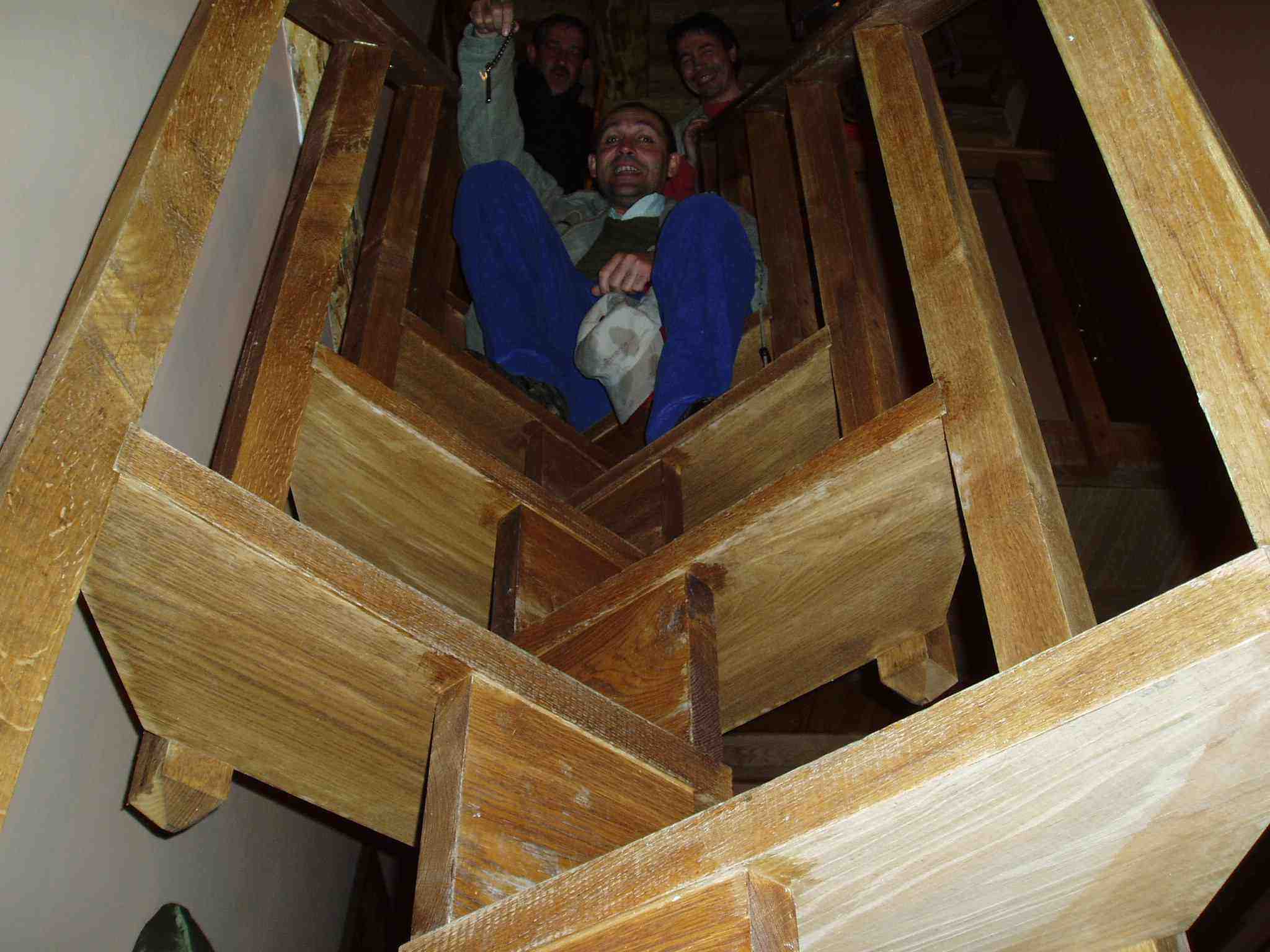 Luís el Negro se ofrece a acompañarle a su habitación en el Hostal. La escalera es de madera, con un diseño espectacular y muy empinada. La habitación es limpia, bonita y acogedora.