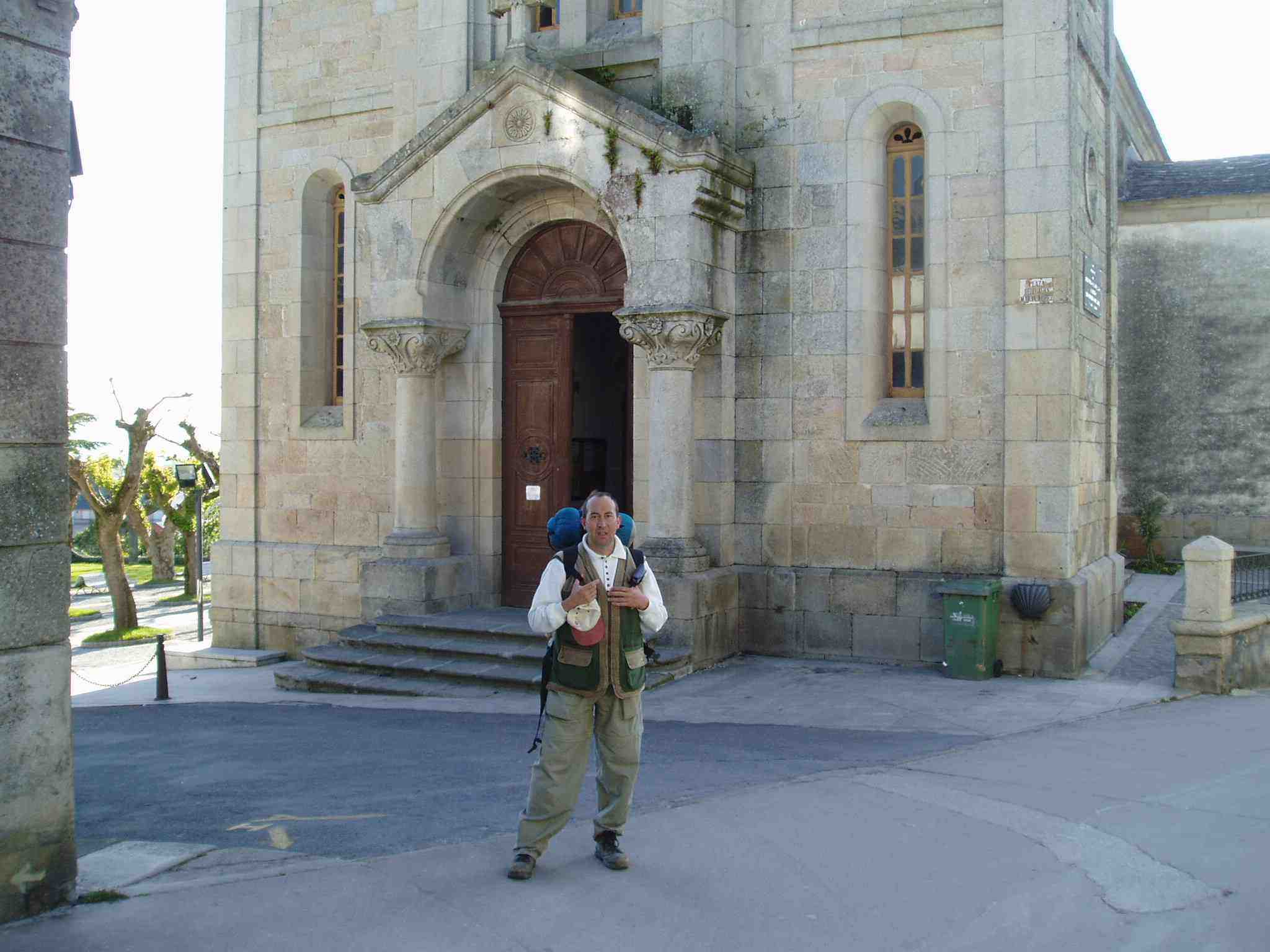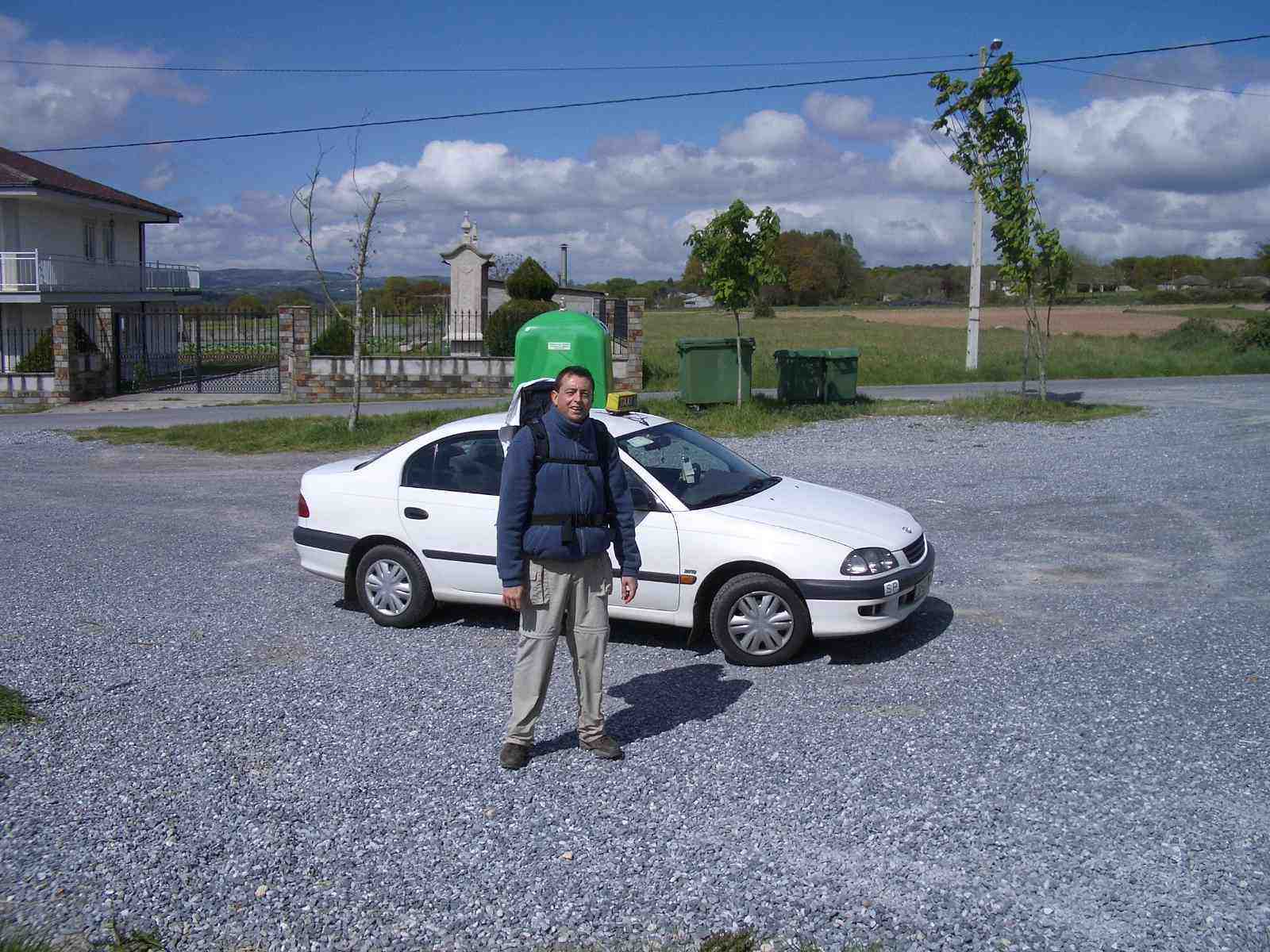 Aunque a esta hora hace fresco, el tiempo es bueno y la mañana promete ser calurosa. También hoy la etapa sería larga y dura. Michel ayuda a bajar la pesada mochila de las sevillanas al taxi que espera en la puerta del albergue y que se encargaría de llevarla hasta Portomarín. Bromeando, le pregunta al taxista que si también podría llevarle a él, a lo que le responde sonriente que, por 20 euros, encantado. Aunque reconoce que no le vendría nada mal, desecha rápidamente la idea.