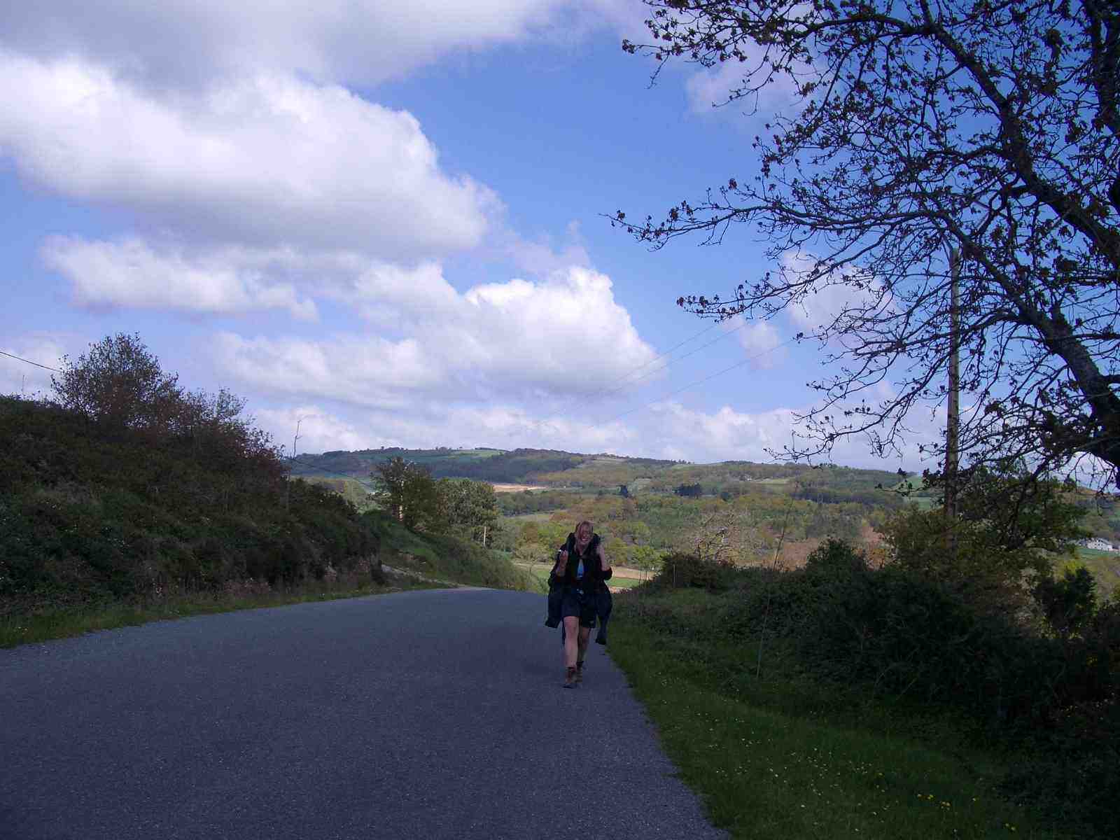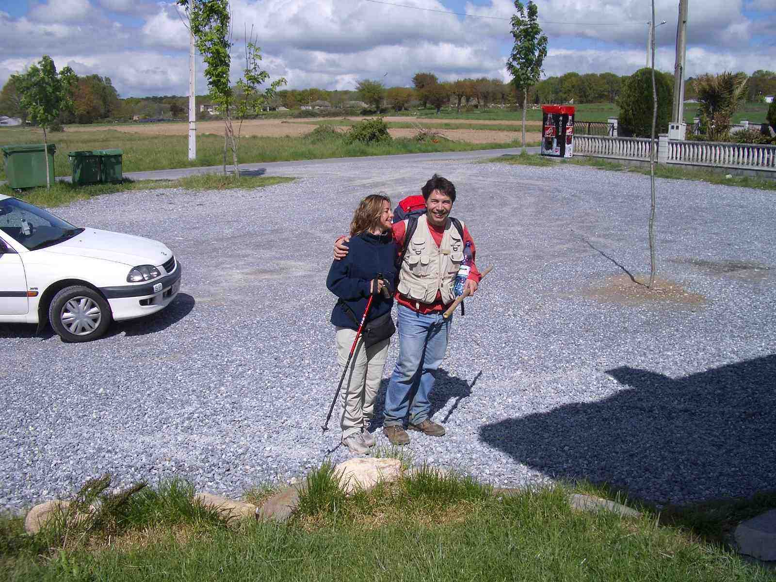 Medio kilómetro después Michel se da cuenta de que ha dejado olvidada su caña en el Mesón de Morgade. Decide regresar por ella mientras Ely continúa su camino. Desanda el camino andado y recoge la caña volviendo a emprender la marcha. Ely va despacio y pronto caminan juntos de nuevo. Continúan charlando de la famosa página web, de sus libros, de los GPS's, y de otros temas referentes al Camino. Ella parece interesada. Michel le anima a escribir sus experiencias y enviárselas para publicarlas en la web. A ella le gustaría.