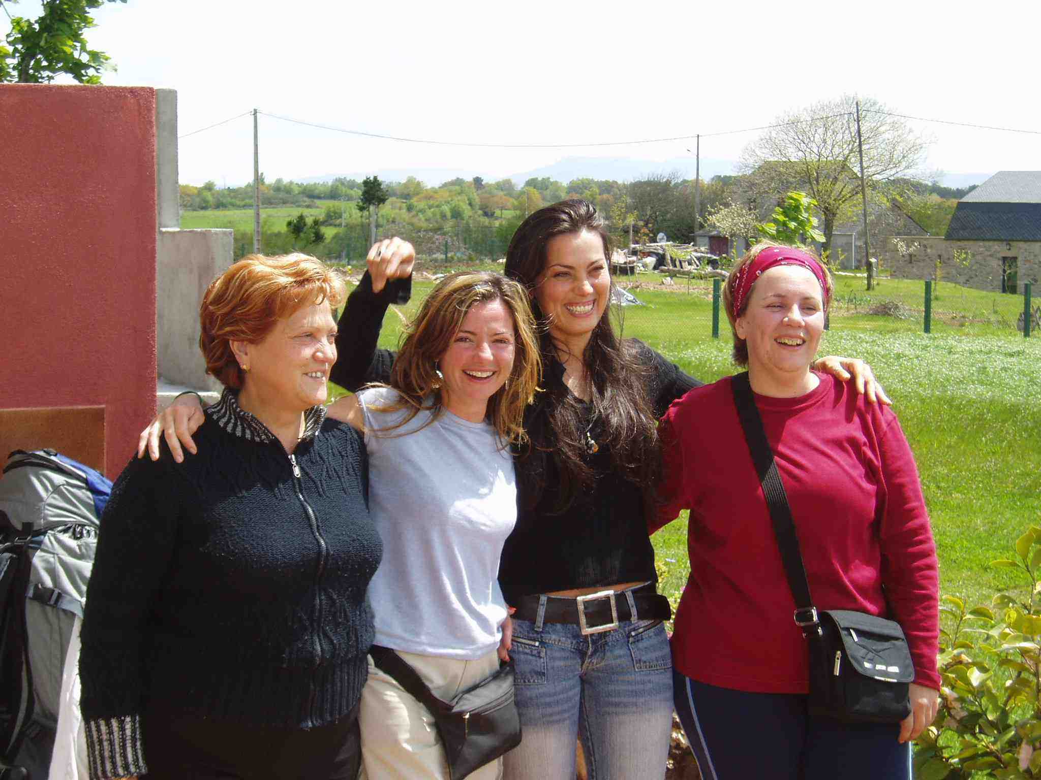 Ya todos juntos, después de las correspondientes presentaciones y sin prisa alguna, descansan en el Mesón comentando con Carmen y Sara distintas anécdotas del camino y bromeando con Raimundo, su nuevo amigo taxista. El reportaje fotográfico para la posteridad es impresionante.