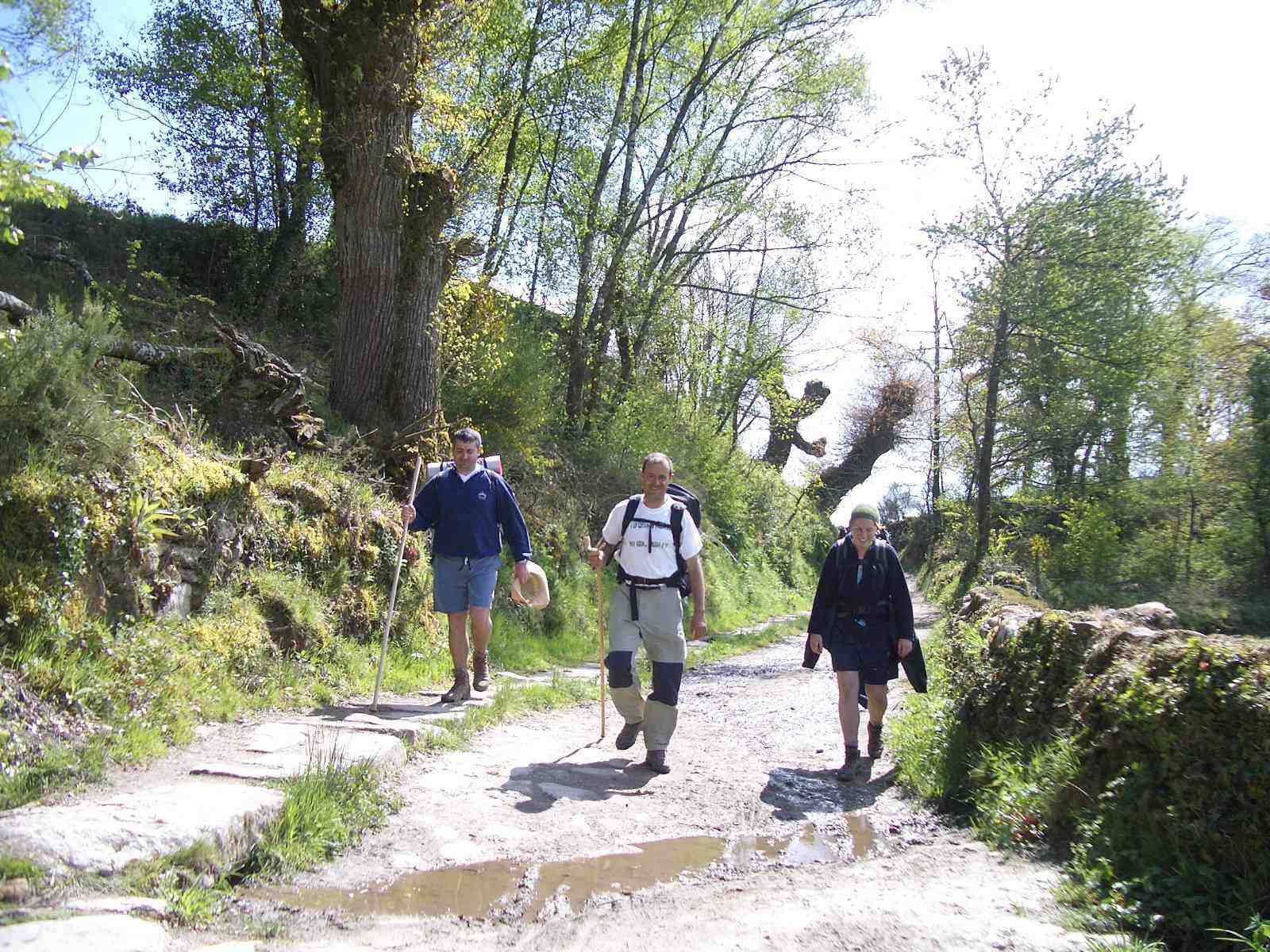 Después del desayuno los peregrinos comienzan a desfilar. Michel, como suele ser ya habitual en él, sale rezagado tras de Primi, que ya andaba un poco remolón, renqueando, "chupando rueda", como él mismo explicaría después. Ángel y Luís el Negro, pletóricos de forma, se han adelantado, seguidos por las amigas sevillanas escoltando y apoyando a Luís Martín, que también algo averiado, tenía intención de buscar una farmacia en Sarria para comprar algún medicamento para sus pies.