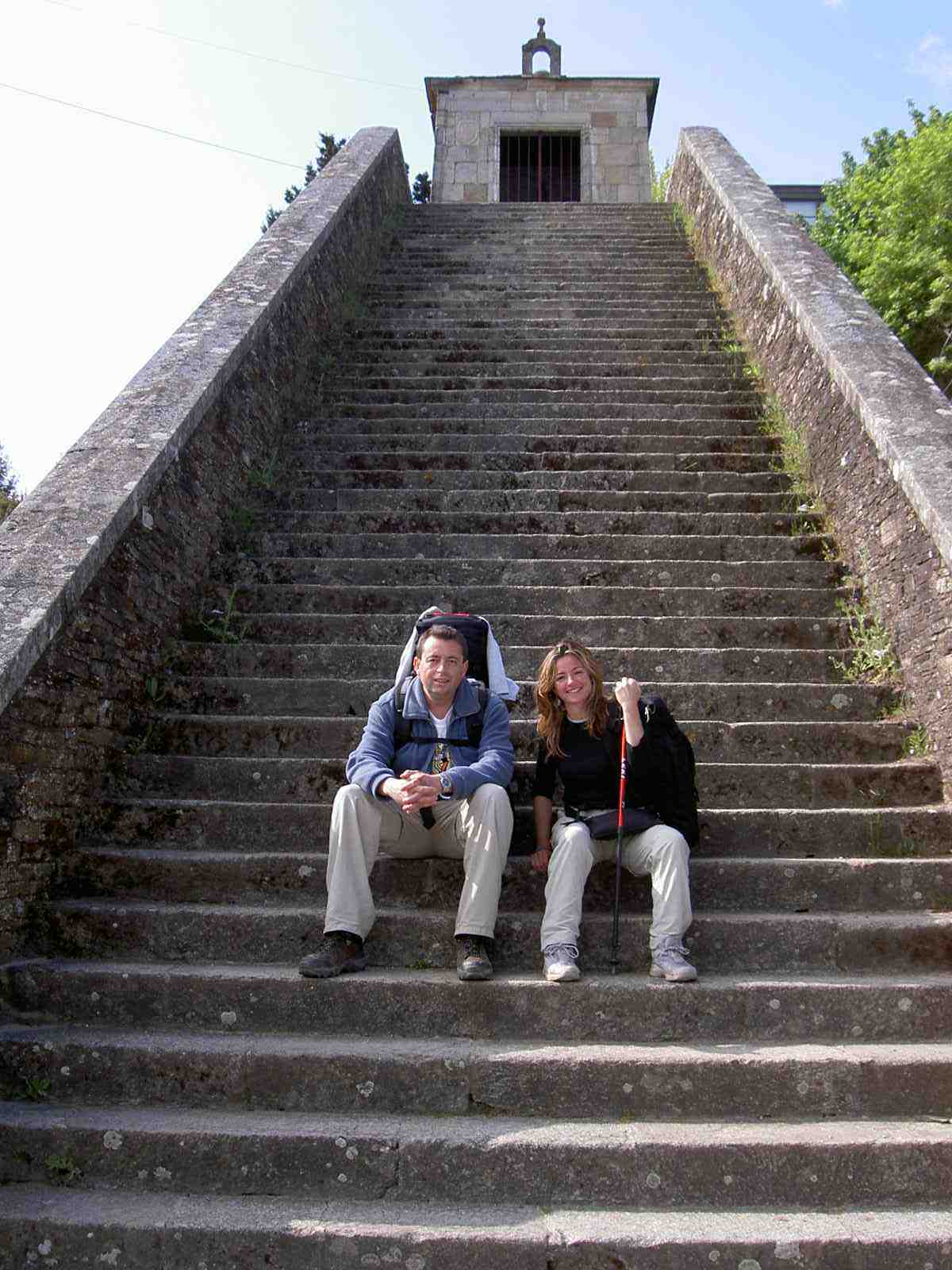 La llegada de Luís Martín les hace sonreir. Viene destrozado, arrastrando los pies, como si acabara de finalizar la maratón de Nueva York. Michel le aconseja divertido que aproveche el taxi aparcado en la puerta para que le lleve hasta el final de la etapa, Portomarín, a lo que Luís le contesta sudoroso y sonriente: "pues no es ninguna tontería".