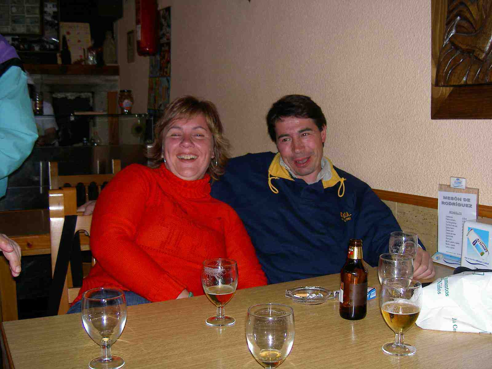 Mientras se duchaba, sus amigos le esperaban en el Bar Rodríguez, (siempre habían comentado que aquel bar era de Ángel, pues se apellida Rodríguez también). Una vez allí tomaron unas cervezas antes de cenar. Ángel comentó a Michel que había encontrado una litera en el albergue para Ely. Pronto se les unieron los gaiteros, Alfonso, y el grupo de amigas de Marbella, Madrid, Toledo y Orense, incluída Yolanda que había podido continuar hasta allí.