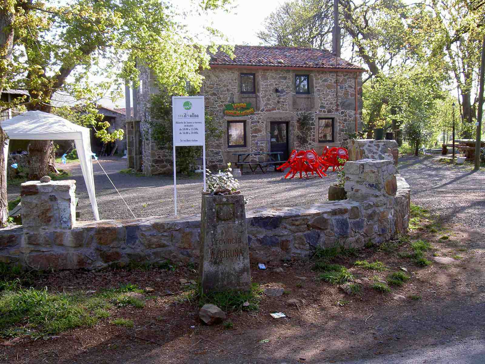 El camino hasta la Casa de los Somoza es un agradable paseo bajo bosques sombríos de carballos que protegen a los peregrinos de los rayos del sol. Poco antes de llegar se entra en tierras de A Coruña quedando atrás la provincia de Lugo.