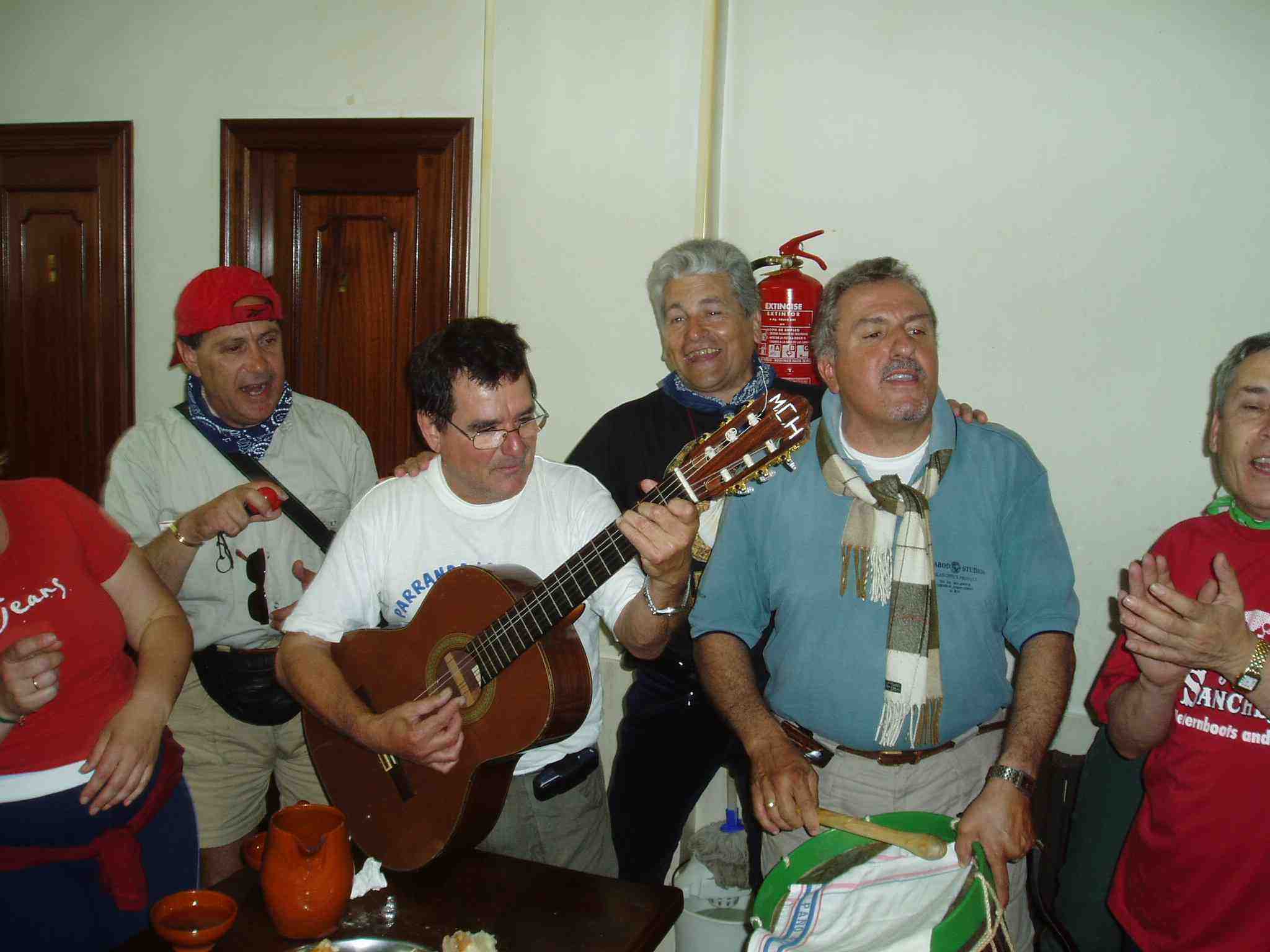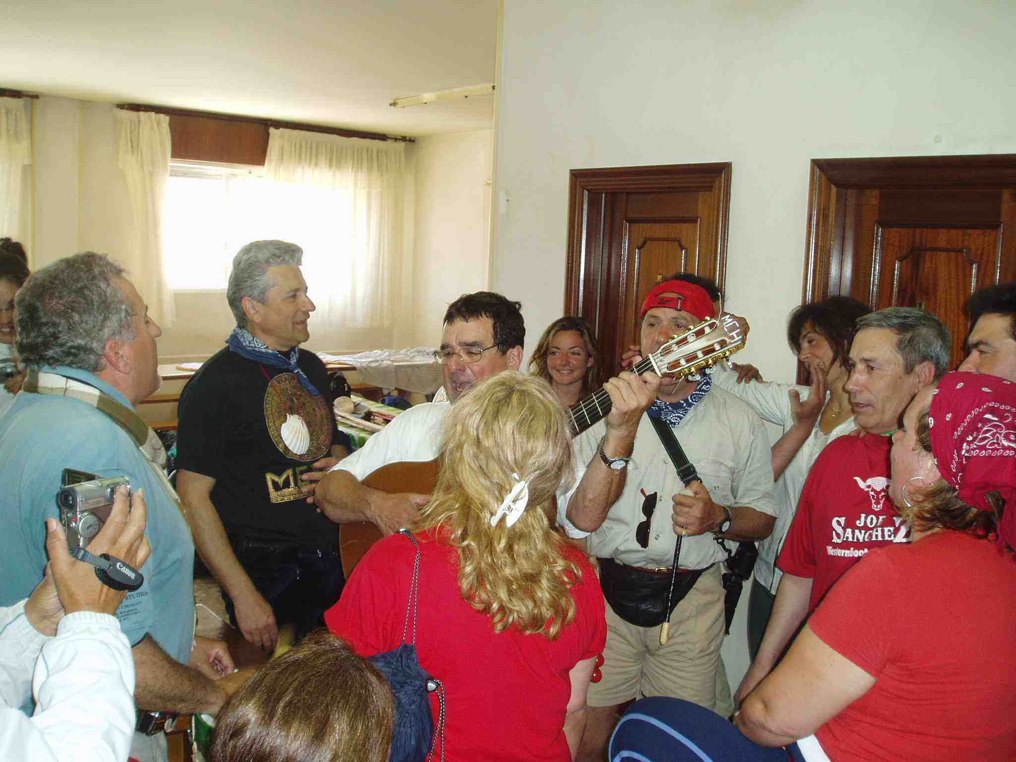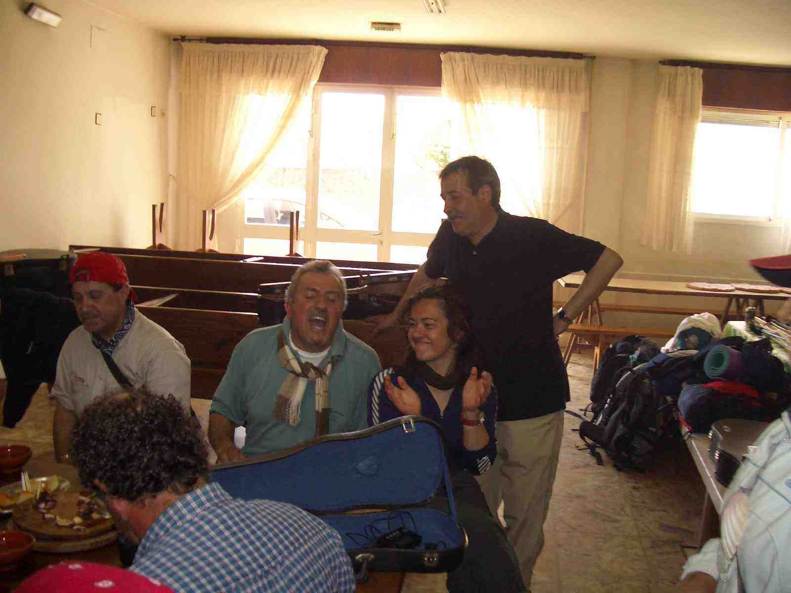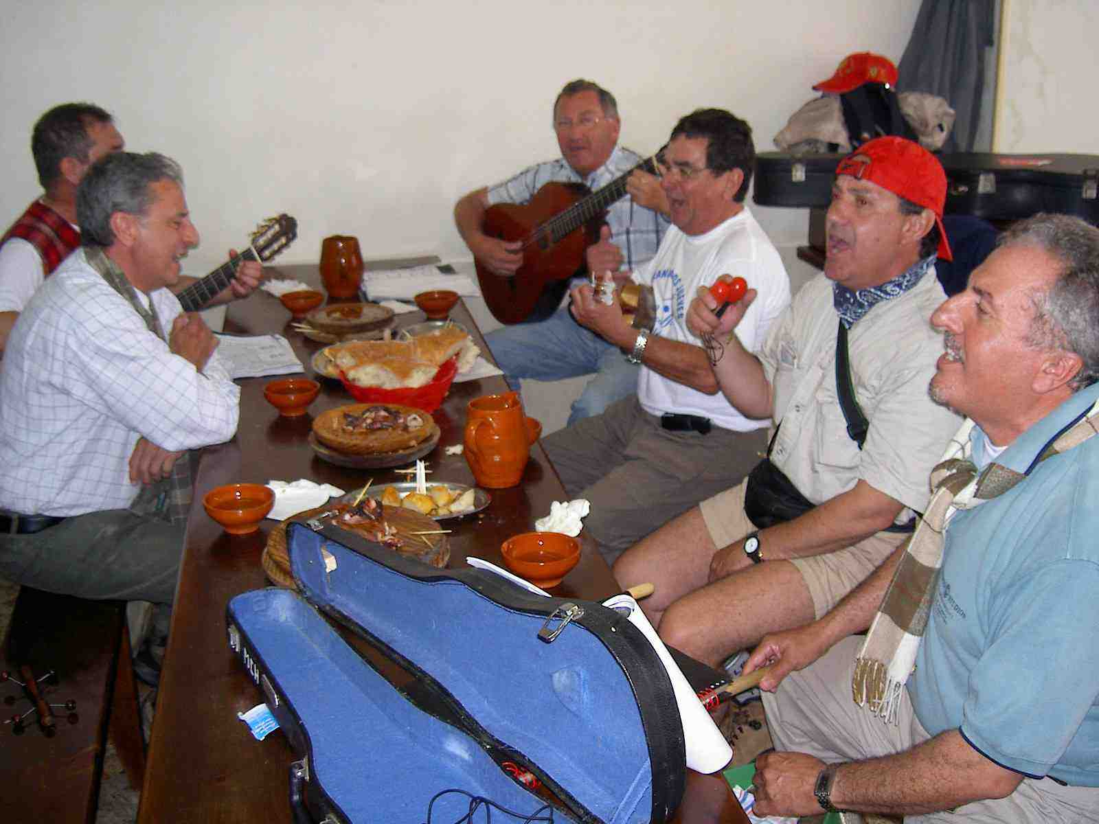 Cuando el grupo de peregrinos canarios finalizan la comida preparan los instrumentos y comienzan a interpretar preciosas canciones, muy conocidas.