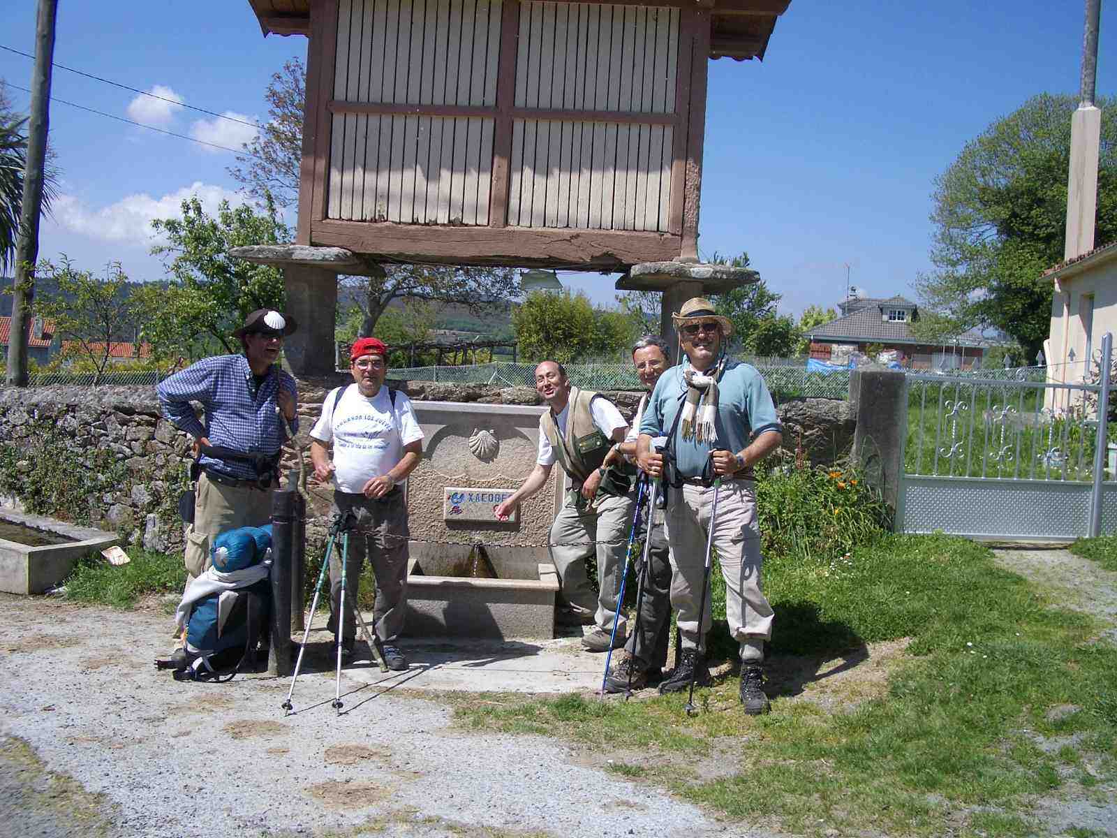 Ya en ruta, mientras Michel toma una foto, Ángel "refresca" a algunos de los amigos canarios en una fuente. Hace calor y ellos ni se inmutan. Continúan juntos el Camino.