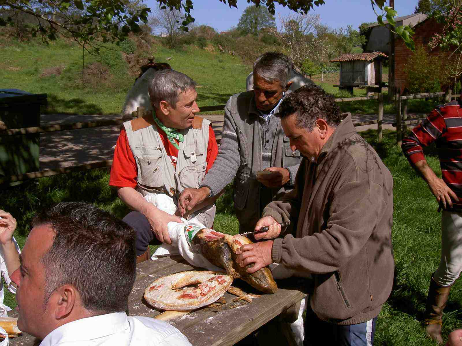 Aproximadamente a las 15:00 horas los peregrinos, exhaustos pero felices, comienzan a desfilar. Ana, del grupo de los jinetes, le comenta a Michel que más adelante, en Castañeda, efectuarán una parada para dar cuenta de un jamón y buen vino. Están todos invitados.