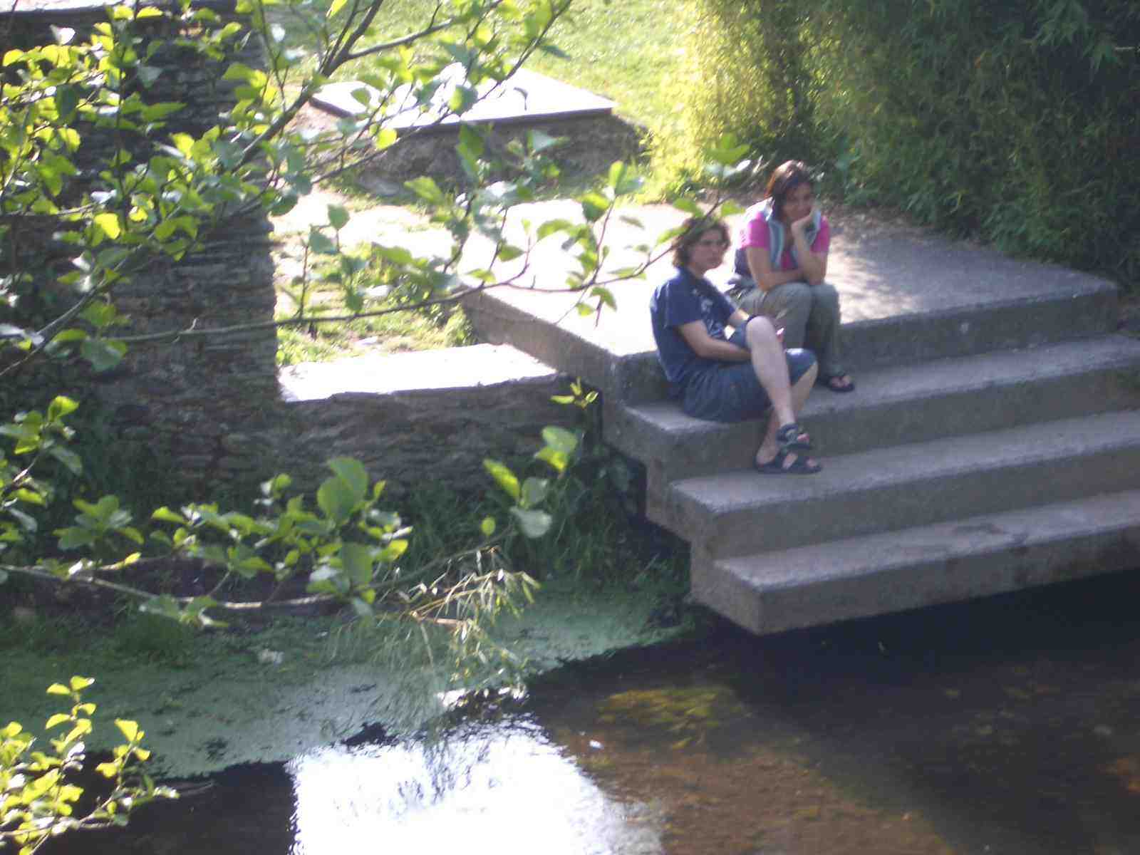 Una vez acoplados el saco y la mochila en su litera, Michel se dirige a la escalinata que se introduce en el río a descansar y disfrutar del remanso de agua fresca en el que tantas veces ha metido los pies. Muchos peregrinos disfrutaban del sol descansando tumbados en la hierba. Primi ya estaba allí charlando con Ana mientras se refrescaban los pies en el agua. Cuando Ángel se ha acercado envuelto en su toalla después de ducharse Michel hace intención de tirar de ella. Él ha salido corriendo. La gente aplaudía divertida. Después, con la misma toalla de Ángel, Michel se ha ido a duchar. Cuando ha regresado a la litera para cambiarse, Yolanda se estaba quedando dormida. Parecía tremendamente cansada.