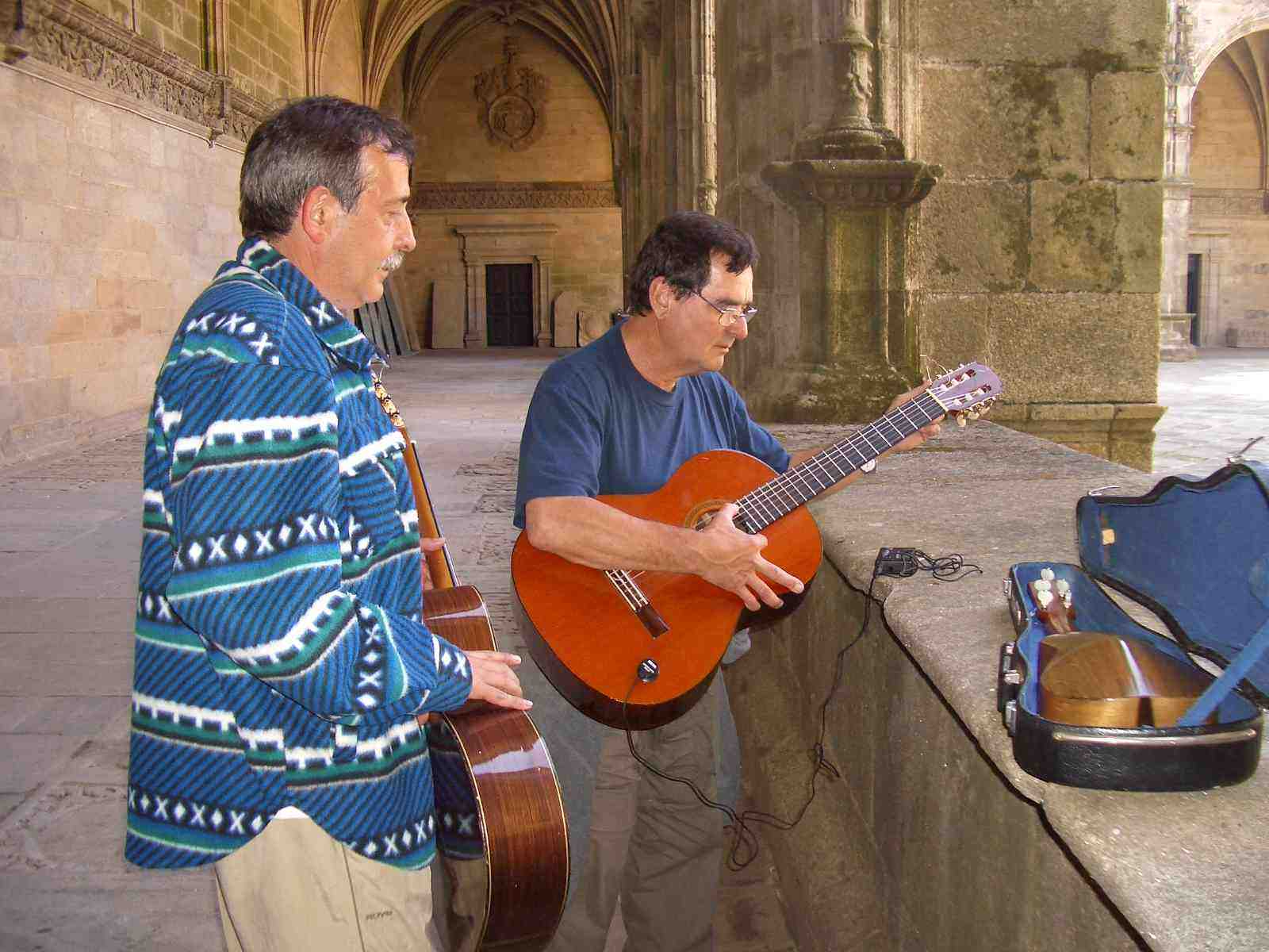 Marcelino le deja una guitarra a Michel y le anima a acompañarles. Él, dubitativo, en medio de la Catedral