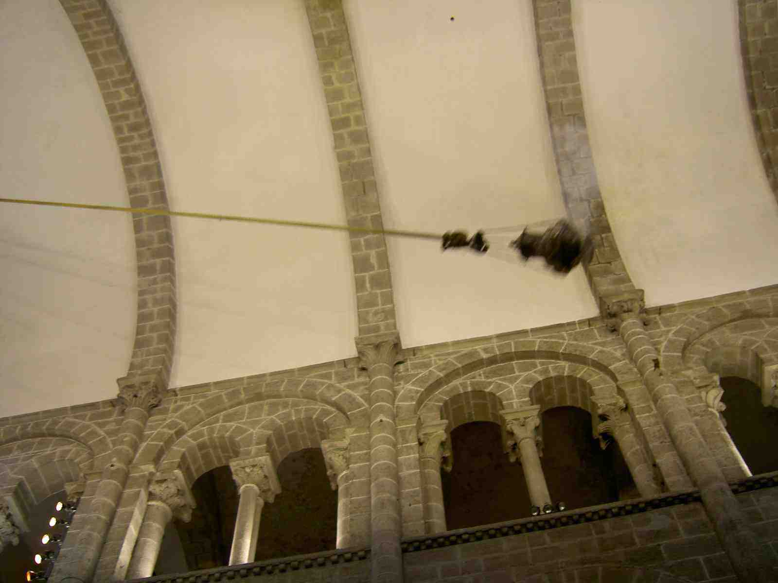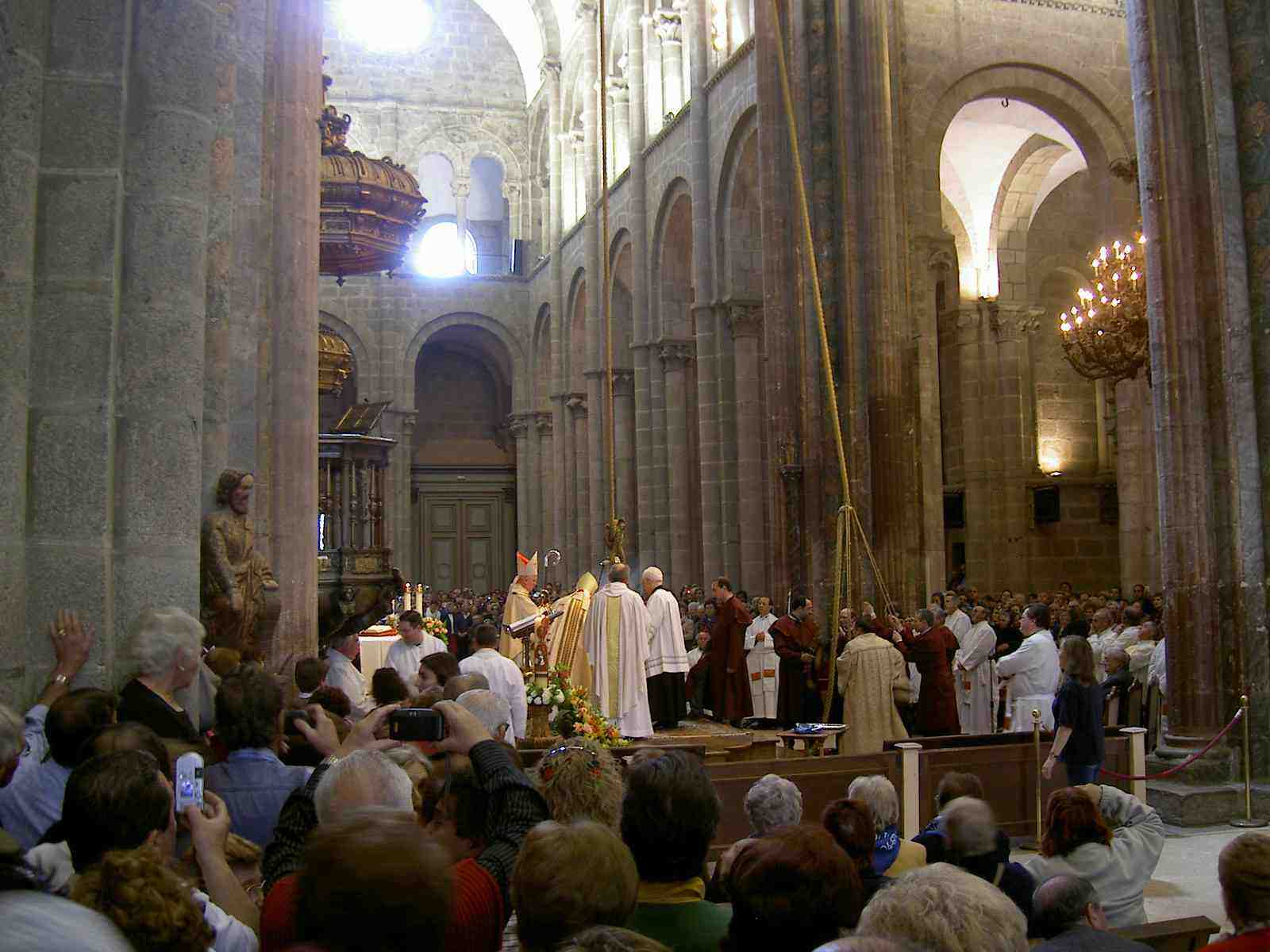 Al final se queda a su lado. Ven el botafumeiro balancearse de parte a parte de la cruz. Algunas personas se han mareado