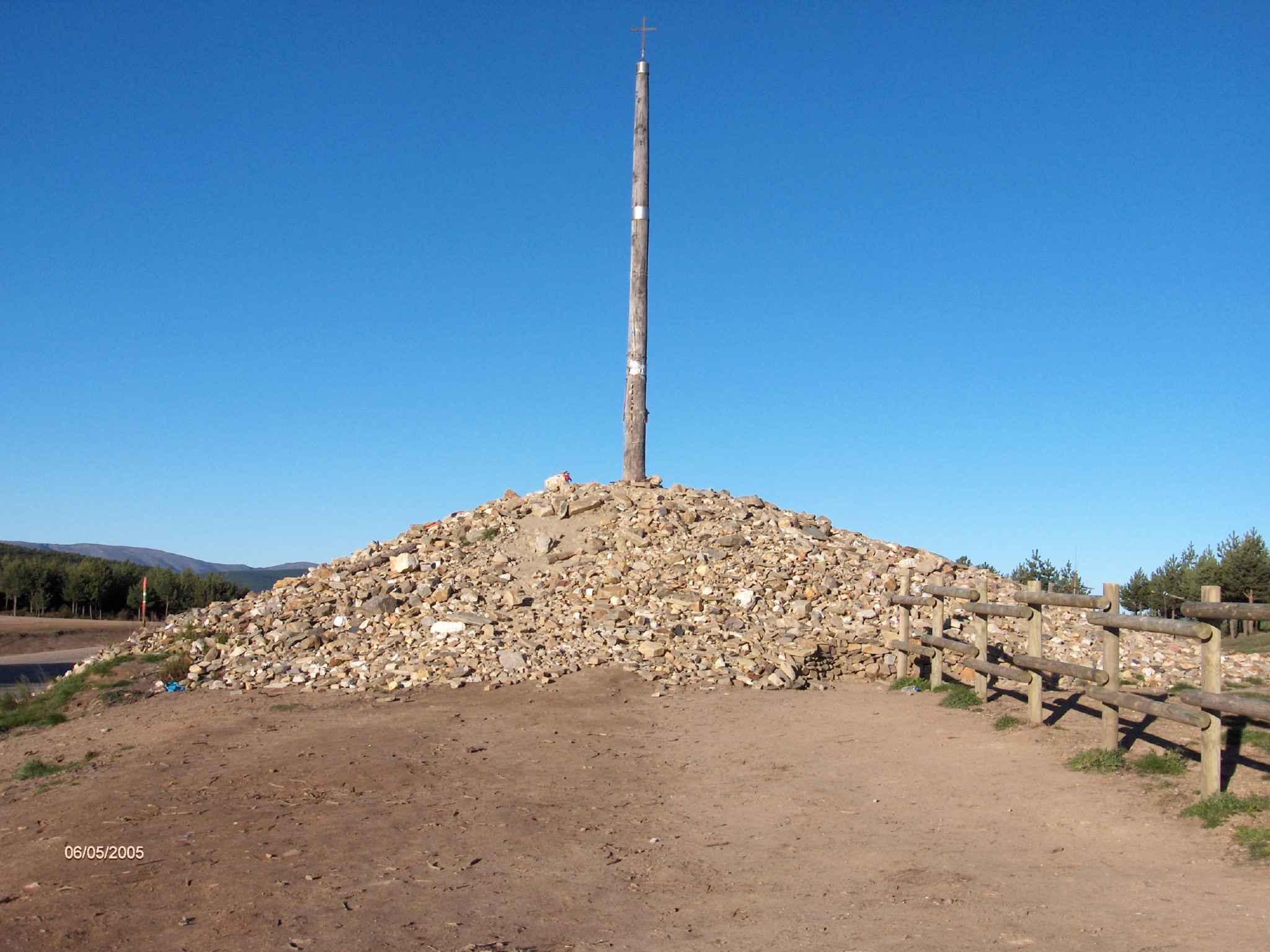 Llegando a la Cruz de Ferro, por fin tengo una llamada de Michel preguntando que “dónde coños estamos” y que “a qué vienen tantas prisas”. Prometo esperarle en Manjarín mientras, acompañado por Luis, hacemos algunas fotos en la Cruz. Aprovecho para lanzar la piedra que traía en la mochila desde casa aligerando así un poco su peso.