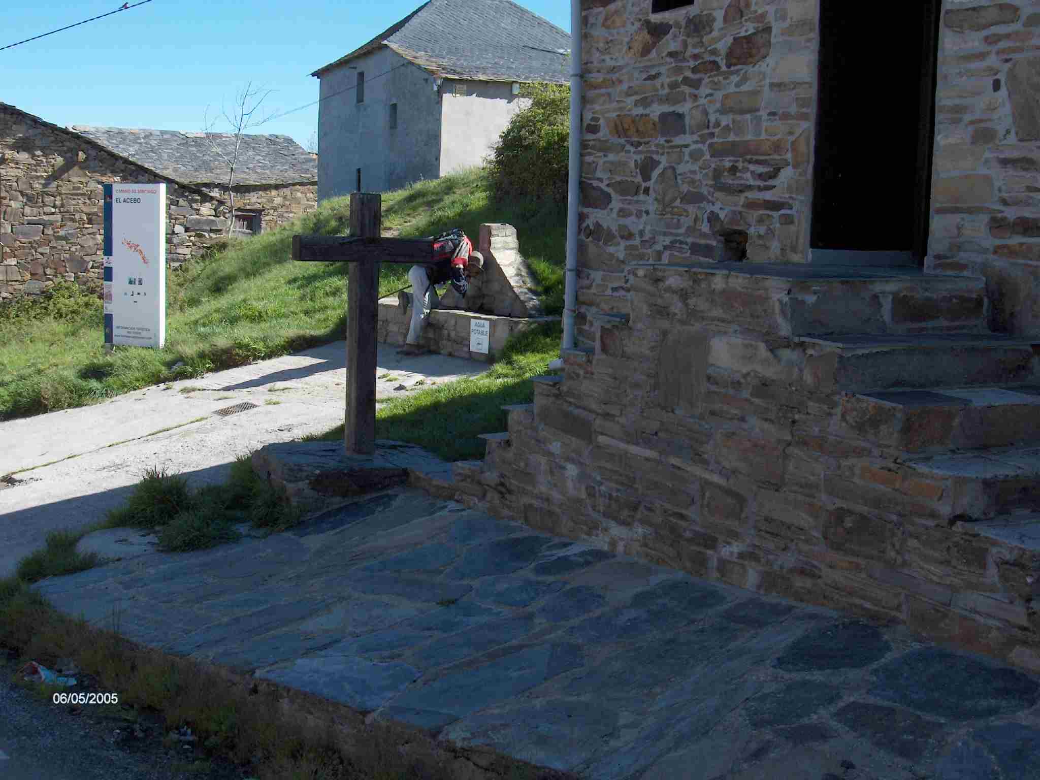 Cuando alcanzamos a Marina, que caminaba solitaria con su típico bastón cruzado a la espalda y que sólo sacaba en las cuestas arriba, aún faltaban unos dos kilómetros para El Acebo. Al pasarla bromeamos sobre el lavado de camisetas a cambio de una jugosa cerveza en El Acebo. Aunque no cerramos en definitiva ningún trato ella apretó el paso tras nosotros que nos acercábamos al pueblo mientras nos preguntaba desde muy atrás si ese era el camino correcto. Tras unas curvas del camino entramos en El Acebo.