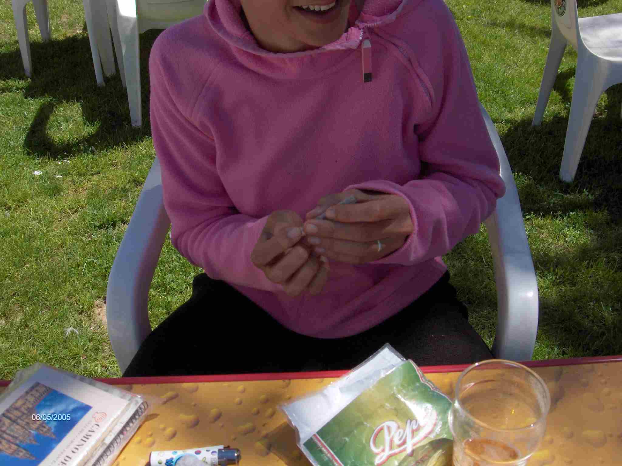 Marina, mientras lía un cigarrillo con tabaco picado a la antigua usanza, incluyendo un pequeño filtro, nos explica que es tabaco de pipa y que así salen los cigarrillos mucho más baratos. La verdad es que da la impresión de que está liando un “porro”, cosa que nos hace mucha gracia.
