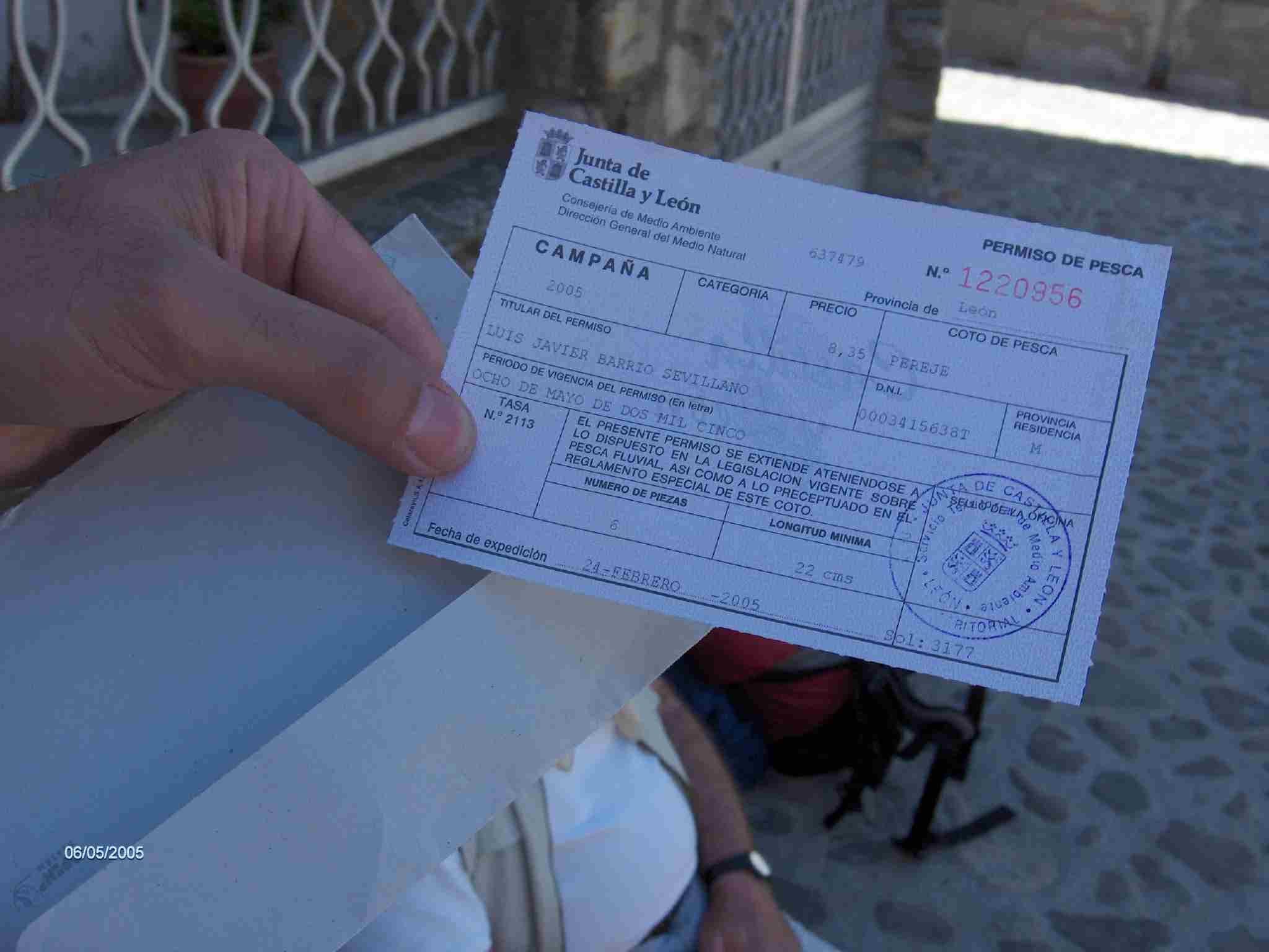 Luis nos muestra un permiso de pesca que ha obtenido en Madrid para la zona de Pereje. Lleva una caña en su mochila, al igual que hizo el año pasado, aunque en aquella ocasión no se atrevió a utilizarla por miedo a alguna sanción. Este año, con su flamante licencia, podrá por fin dedicar una mañana entera a las truchas del río Varcalce.