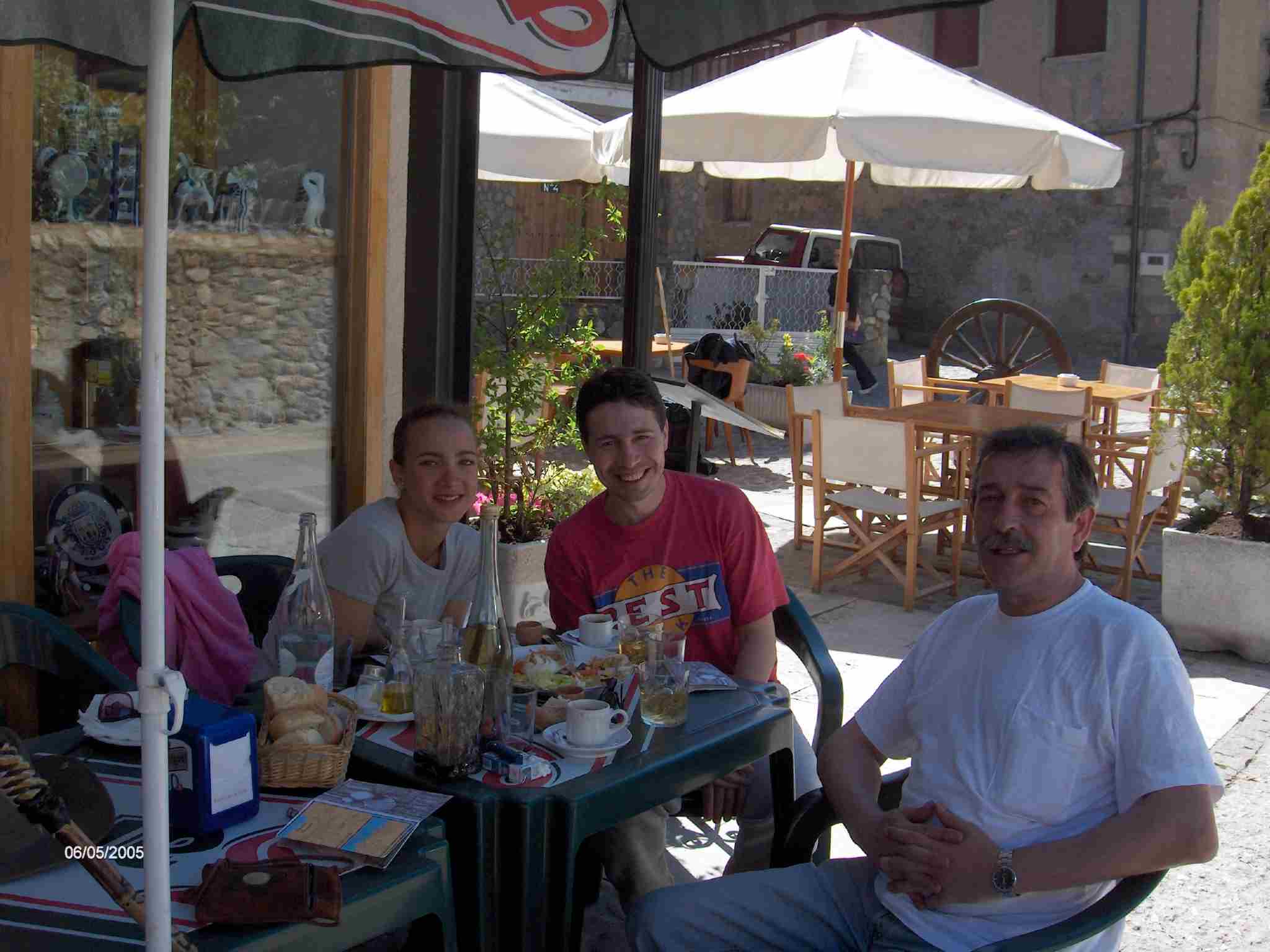 Otra vez de camino, acompañados ahora por Marina, continuamos hacia Molinaseca donde nos esperaban nuestros compañeros. Cuando llegamos eran las 4 de la tarde y ya habían finalizando la comida. Mientras comíamos nosotros en una terraza exterior de la Posada de Muriel y aunque teníamos previsto en nuestro G.P.S. finalizar la etapa en este pueblo, decidieron continuar hasta Ponferrada dado que aún quedaba mucha tarde.