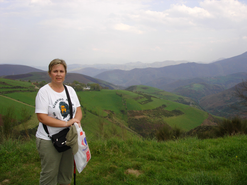 Mientras charlamos animadamente con los dueños del Albergue y me enseñan amablemente las instalaciones del nuevo hostal, limpio y espacioso, y las literas y habitaciones, algunas con "jacusi" incorporado, destinadas tanto a peregrinos como a cualquier otro tipo de viajeros, Ángel consigue, por fin, tomar una foto de Sonia, muy reacia a aparecer en Internet el año anterior.