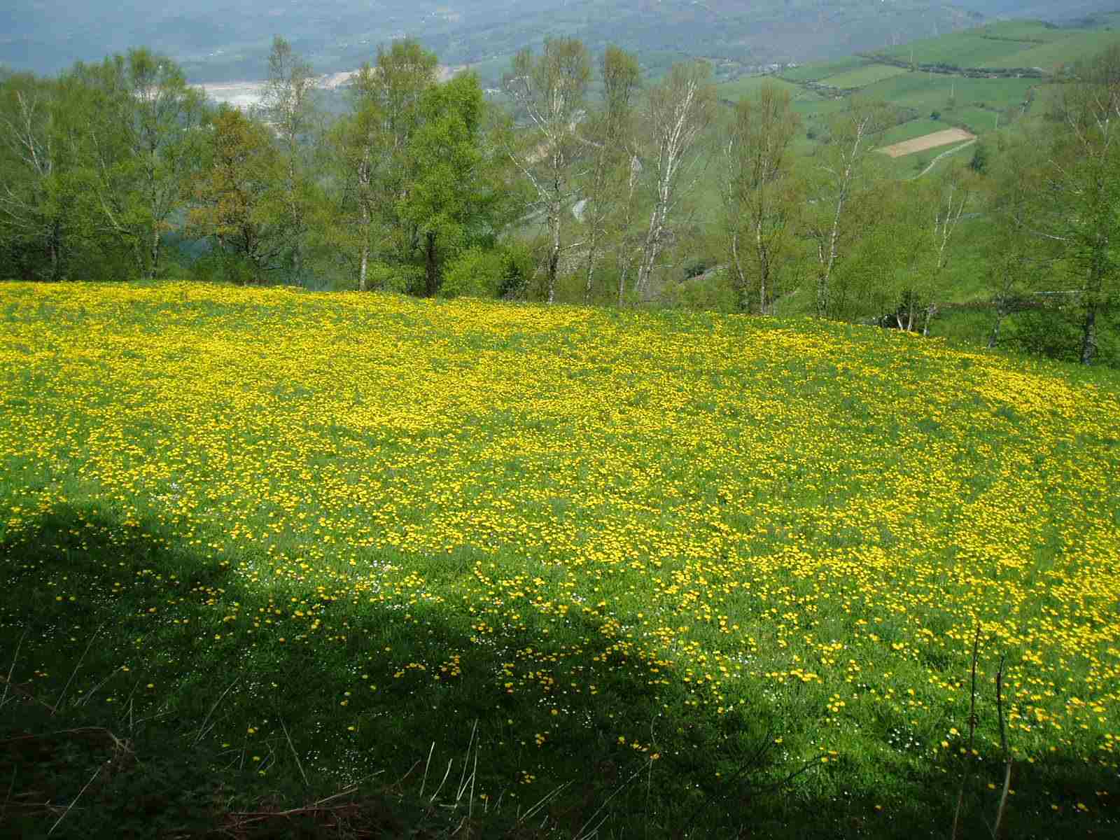 Nuestra amiga Isabel no está y tampoco José, su marido. Su hija nos atiende estupendamente mientras admiramos, tumbados al sol, los prados verdes repletos de preciosas florecillas amarillas.