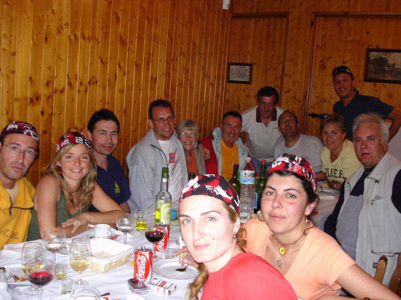 Pitxi, nuestra amiga Marina, a quien hacía tiempo que no veíamos, se encontraba en una de las mesas acompañada por sus amigos. En otra de las mesas se encontraba, sonriente, una de las amigas de la belga, a quien habíamos conocido días antes en El Acebo, acompañada por un compañero seguramente belga también. A pesar de las explicaciones que le dimos no logramos hacerla comprender que su amiga estaba buscándola por el pueblo.