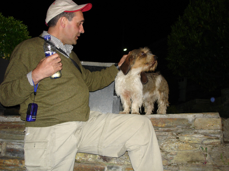 Algunos, antes de retirarnos al albergue, tomamos aún una copa en la terraza. La noche era muy agradable y no apetecía retirarse a dormir a pesar del cansancio acumulado. Poco después nos vamos a dormir exceptuando a Luis y a Michel que se quedan simulando a los Beatles en un paso de cebra mientras se hacían algunas fotos acompañados por un simpático perrillo fost_terrier que se les había acercado y a quien apodaron "El Truchas" en honor a la pesca conseguida el día anterior por Luis.