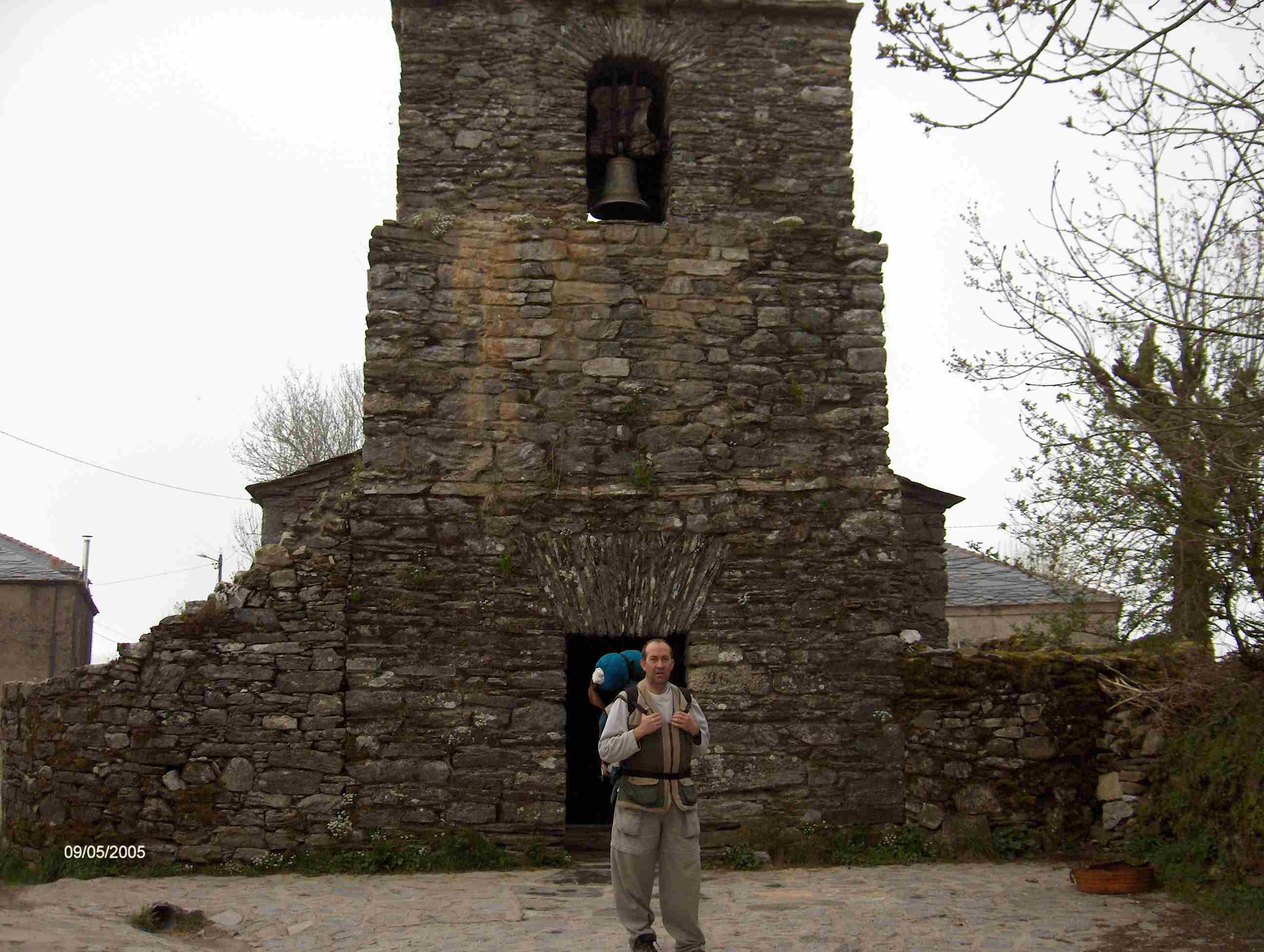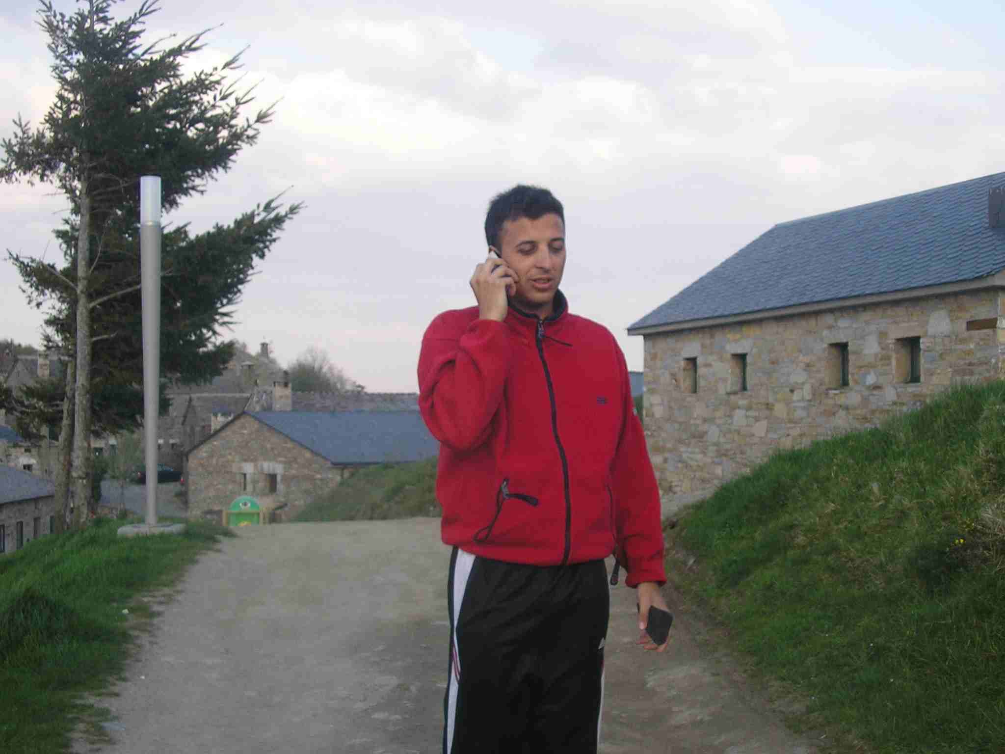 Después de caminar Michel, Ángel y yo, aproximadamente tres kilómetros, Ángel recuerda su móvil. Ante nuestras divertidas sonrisas él sospecha que lo tenemos nosotros. Le aseguramos que no, que se lo ha dejado en O'Biduezo y, después de algunas dudas, y de amenazarnos de malas maneras, decide regresar en su busca. Mientras, nosotros, continuamos muy divertidos el Camino.