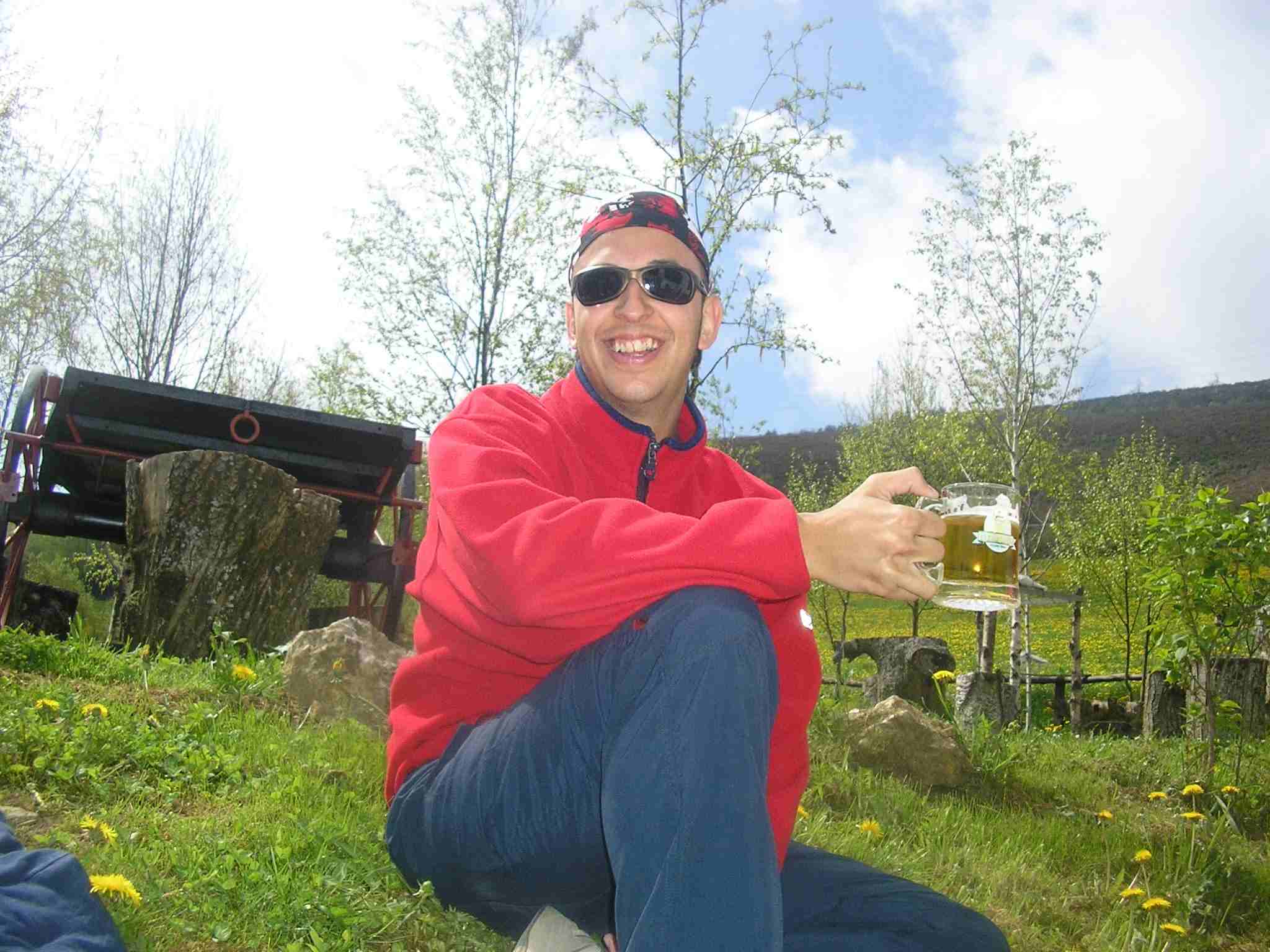 Poco después, dejando atrás algunos rebaños de ganado vacuno, llegamos a O'Biduezo, donde teníamos previsto visitar a nuestra amiga Isabel en el Bar Restaurante Betularia. Exceptuando a Marino, que había continuado sin detenerse ni siquiera para ver el tractor donde el año pasado había dado una vuelta además de un breve cursillo sobre modelos de tractores al dueño, el resto del grupo ya descansaba allí con grandes jarras de fresca cerveza.