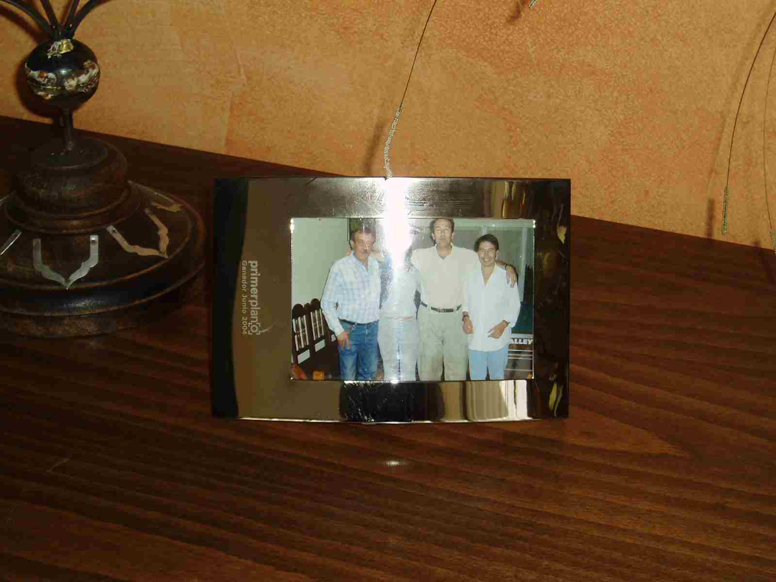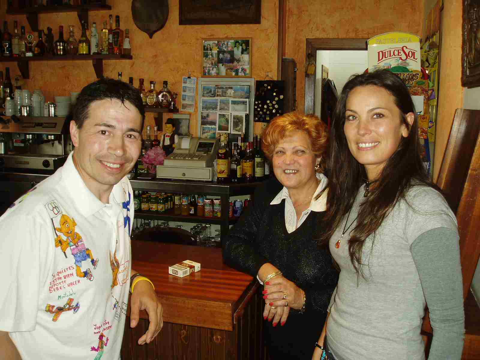 En un tablero de corcho colgado de la pared vemos unas cuantas fotos nuestras del Camino del pasado año junto a Carmen y su familia. Por otro lado, en una cómoda del Mesón hay un portarretratos de plata con una foto en el que se nos vé a los tres junto a Carmen.