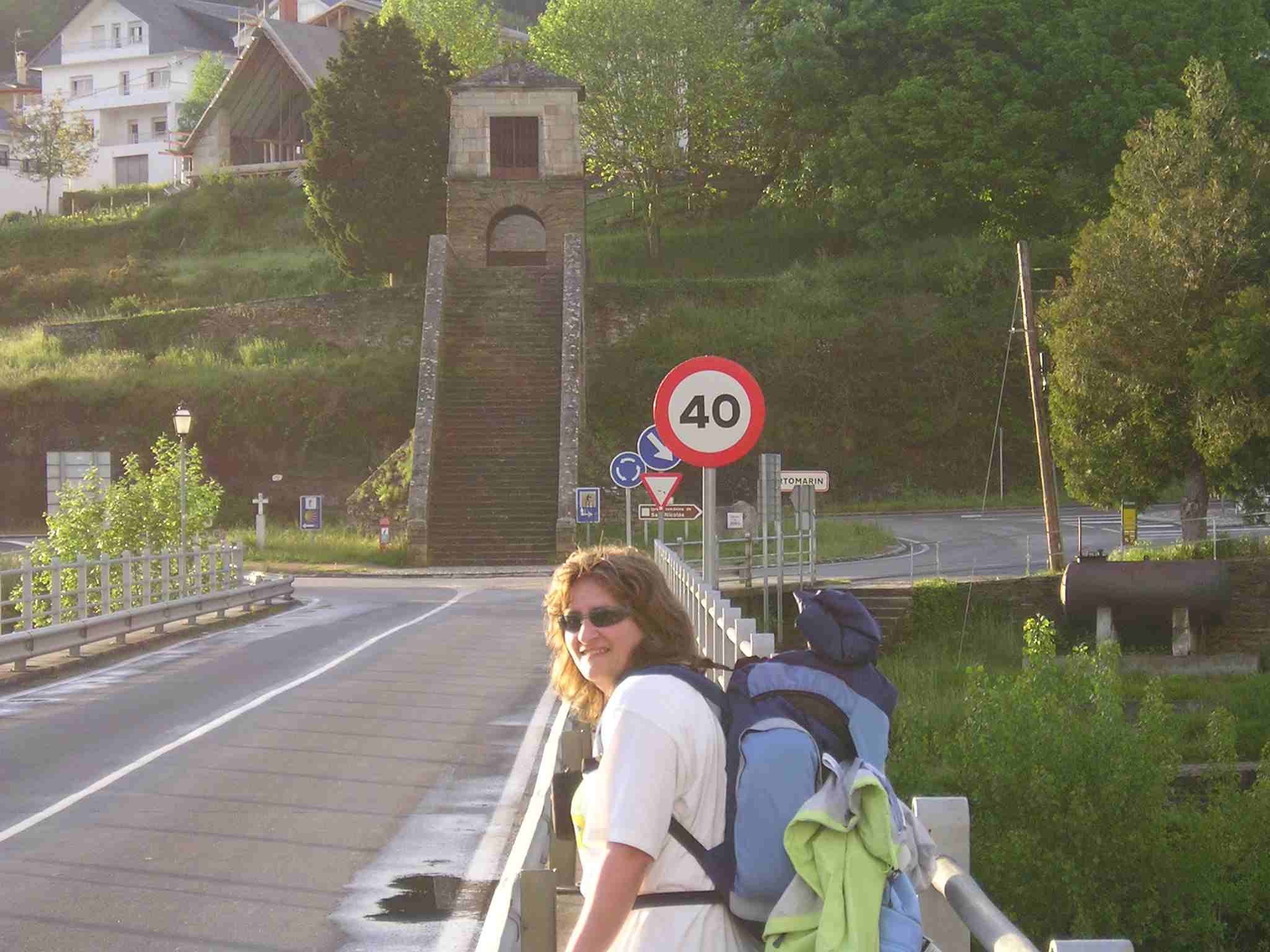 Cuando Michel y yo, sin prisa alguna, comentamos nuestra intención de continuar el Camino, Simo, muy amable, se ofrece a llevarnos en coche hasta Portomarín, a pesar de las llamadas telefónicas de Ángel prohibiendo terminantemente a Carmen que nos llevaran. Por fin logramos convencer a Simo, muy empeñado en llevarnos, de que continuaríamos andando y, después de despedirnos de la encantadora familia agradeciéndoles sinceramente todas sus atenciones y dejarles el libro que llevábamos expresamente para ellos, continuamos el Camino .