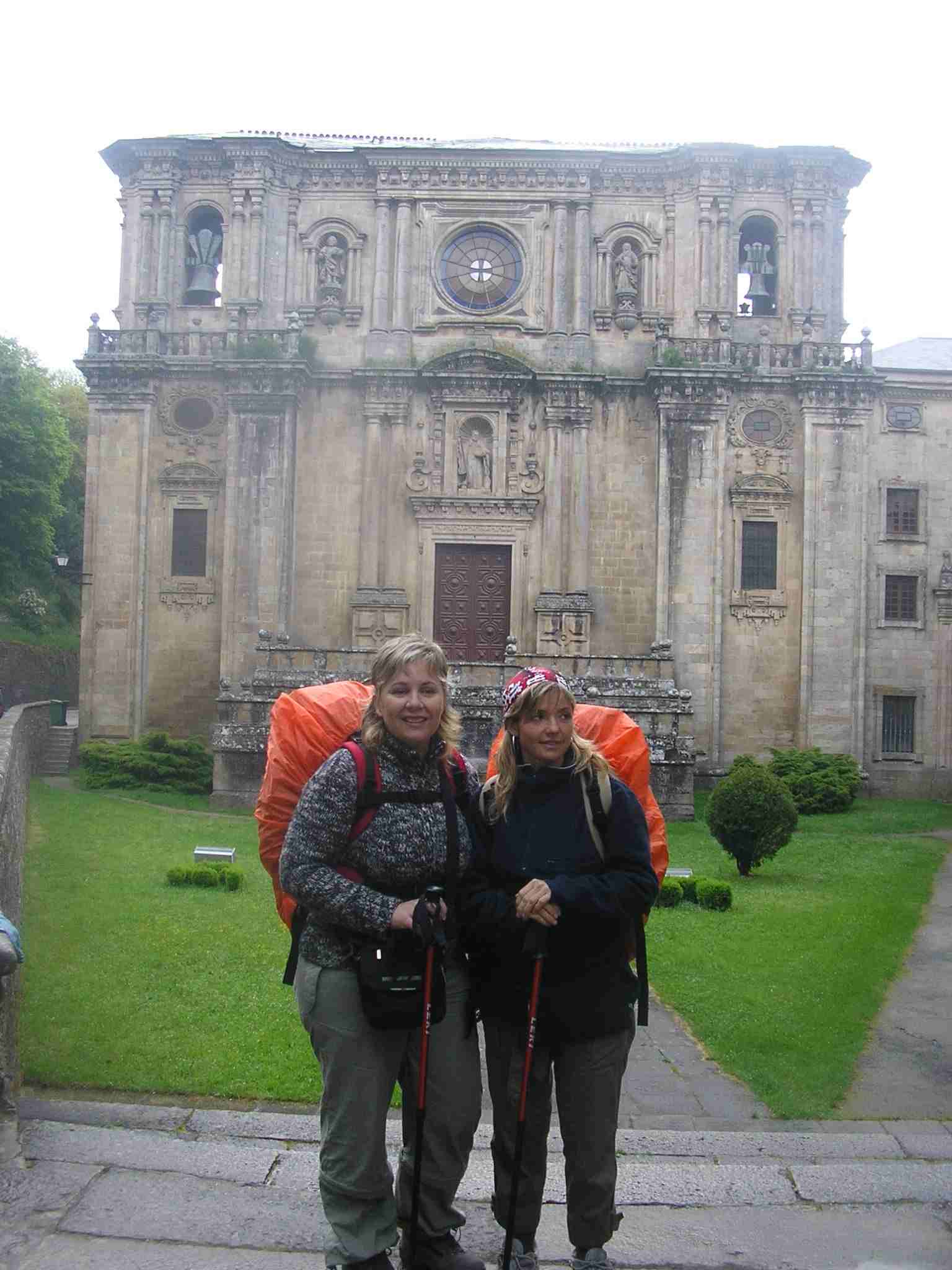 Marino, Ángel, Luis y Michel se habían reunido en Sarria y llevaban mucho tiempo esperándonos. Poco antes de llegar a la cafetería donde nos esperaban, Marino, Ángel y Luis habían decidido continuar aprovechando un momento en que la lluvía había cesado. Michel llevaba dos horas allí cuando subimos las empinadas escaleras y le encontramos.