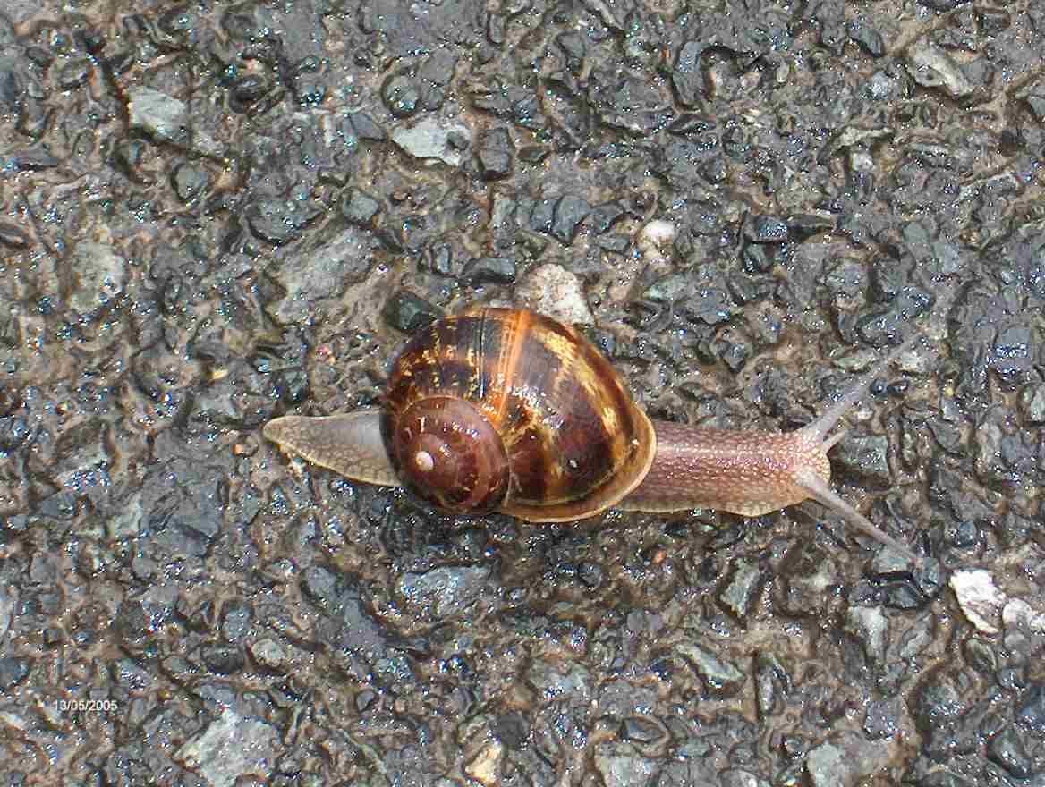 Parte del equipo ya ha partido. Siguiendo su costumbre Pilar, Mauri y Dioni han salido de avanzadilla seguidos de cerca por Ángel. Abandono el albergue bajo la lluvia delante del resto del grupo exceptuando a Michel, que se queda el último y aún anda rezagado sin muchas ganas de recoger sus cosas. Después aún se entretendría haciento fotos a algunos caracoles y babosas espectaculares.