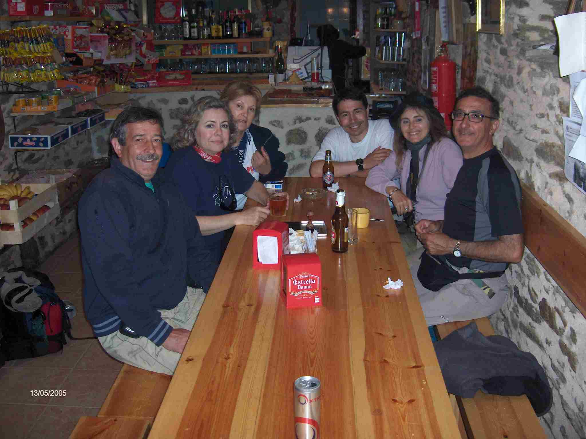 Por fin en El Carro, completamente empapado, encuentro a Pilar, Mauri, Dioni y Marino que han tomado unos huevos fritos de corral y unas cervezas. Ángel también está con ellos aunque ha llegado algo después. Mientras me cambio de camiseta llega Michel que, según comentó, había venido acompañando a Caroli, simpática mujer del grupo de Tenerife. Pedimos también unos huevos que, por cierto, son exquisitos, mientras Pilar, Mauri, Dioni y Marino comienzan otra vez la marcha y llegan a su vez Sole y su grupo.