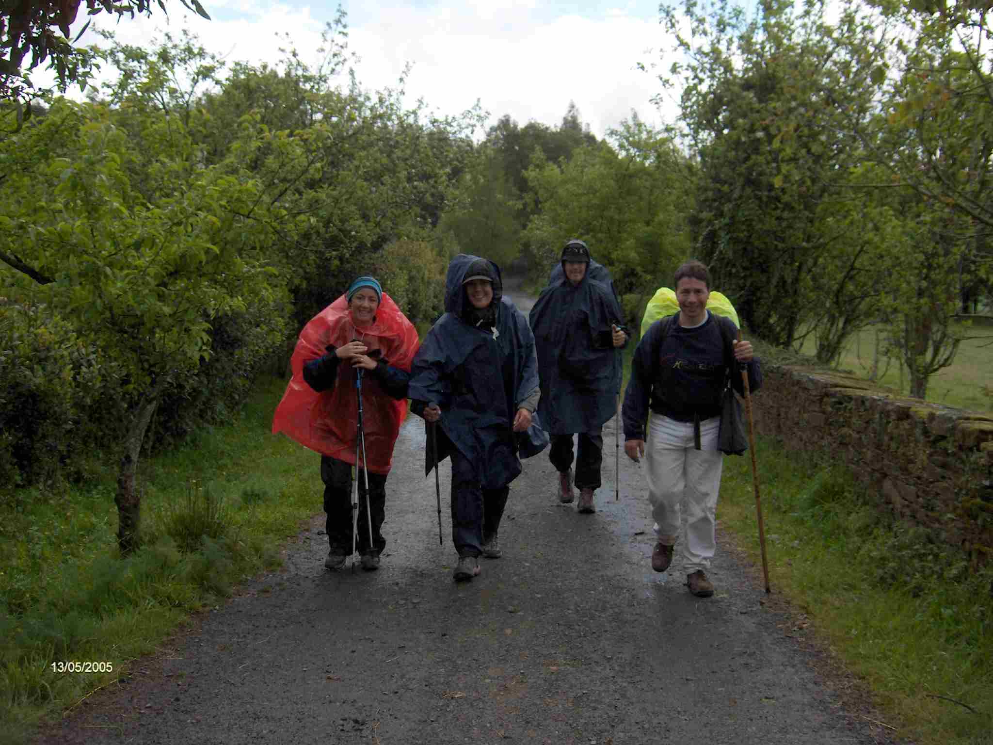 No cesa de llover con intensidad. Tras la comida, después de los acostumbrados elixires, nos ponemos de nuevo en marcha bajo nuestros paraguas. Ángel y sus acompañantes deben llevarnos mucha ventaja y aún faltan muchos kilómetros hasta el Monte do Gozo.
