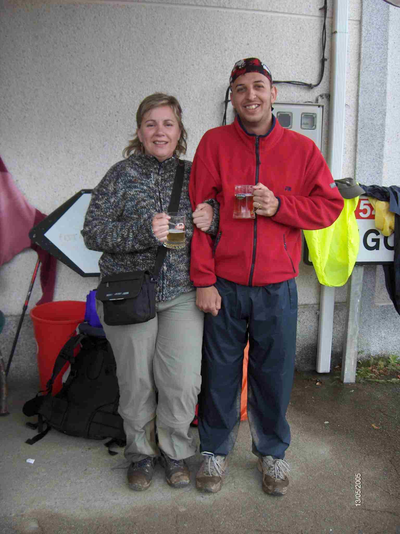 Ya en Santa Irene, mientras tomo una cerveza, van llegando todos en cortos intervalos de tiempo. Michel con Carmen, Elena y Begoña, Santi, Pilar y Sole, Yolanda y Rodri ... La lluvia ha cesado y se está bien en la terraza. Yolanda nos comenta que ha visto a Bebi en su coche que se ha desplazado hasta allí por motivos de trabajo. Pronto se une a nosotros en la terraza. Ángel nos llama para avisarnos que están ya comiendo en Rua los compañeros adelantados por lo que decidimos acercarnos hasta allí. Acompañamos a las catalanas que, al ser demasiado temprano para quedarse en Santa Irene habían decidido continuar el Camino con nosotros hasta el Monte do Gozo, a recoger sus mochilas en el albergue privado y enviarlas en un taxi hasta allá.