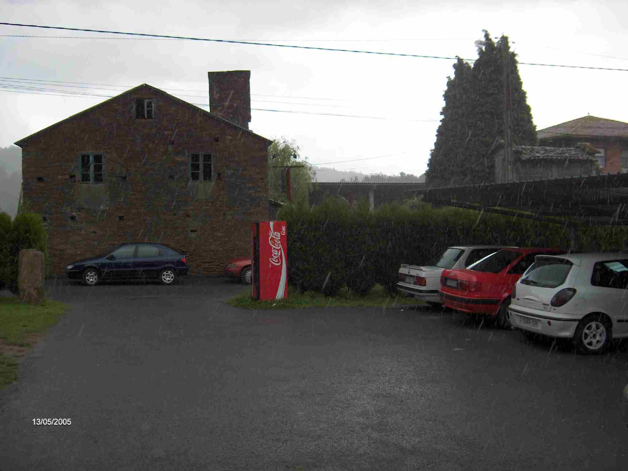 Aprovechando un receso de la lluvia, Ángel, que nos esperaba, decide "ir tirando". Dispuesto otra vez para partir, mientras espero a Michel que se entretiene en el bar charlando con los madrileños, aparecen tres peregrinas procedentes de Barcelona que se resguardan del fuerte aguacero bajo el techado de la terraza. Les pregunto curioso desde dónde han comenzado a caminar, pues no las hemos visto en ningún momento. Me contestan sonrientes que desde Arzúa, por lo que aclaro mi pregunta: “No, no, digo que desde dónde habéis empezado el Camino”. De nuevo me responden muy divertidas que desde Arzúa. Es su primer día de peregrinaje y también el último. Su intención es hacer una única etapa del Camino, es decir hasta Santa Irene, donde ya habían enviado sus mochilas en taxi a un albergue privado. Les comento divertido que no deben demorarse mucho porque puede que se les haga de noche (Santa Irene queda a unos 7 kilómetros y son las doce de la mañana).
