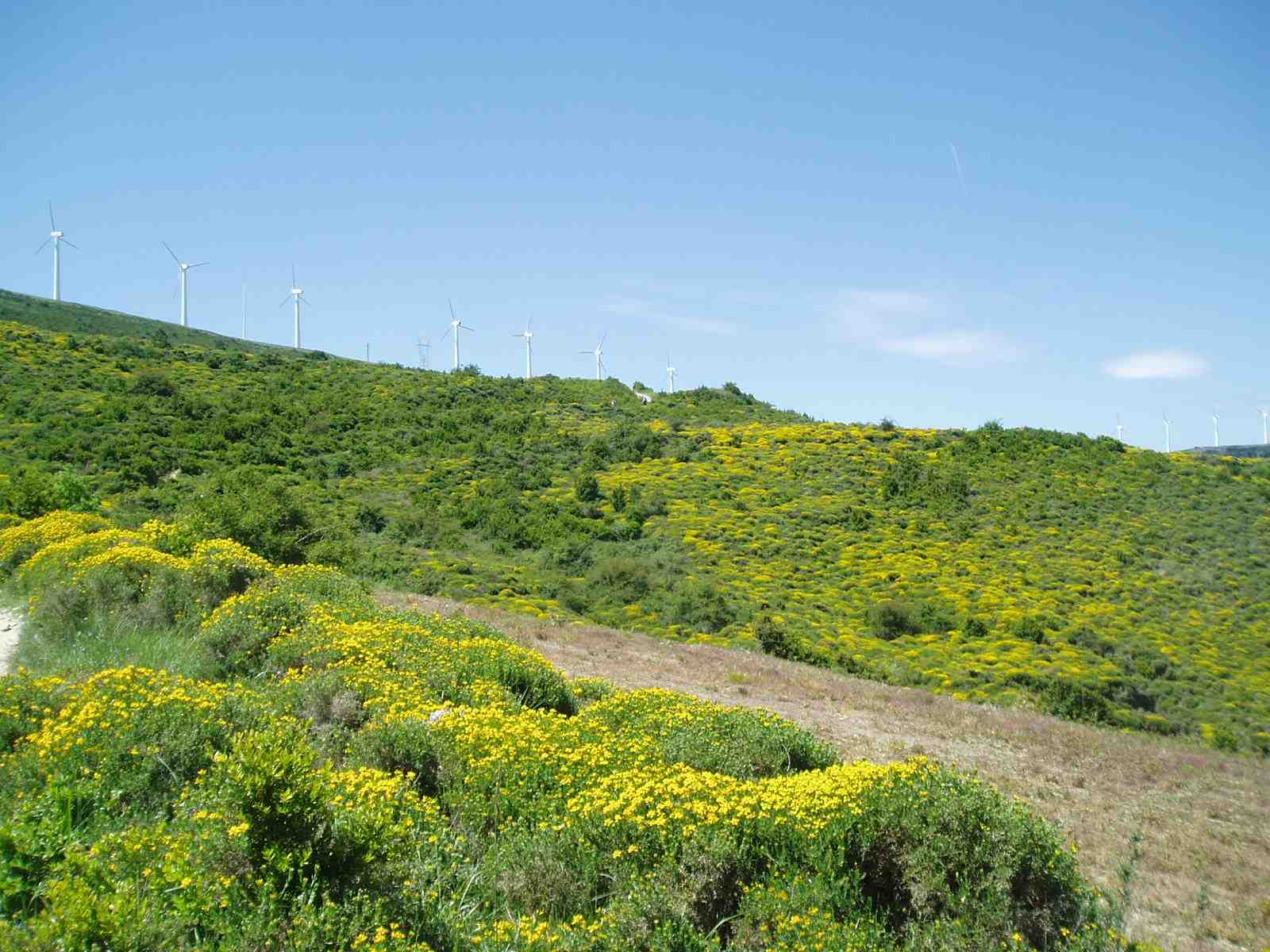 Ahora podemos divisar ya los molinos eólicos que pueblan el Alto del