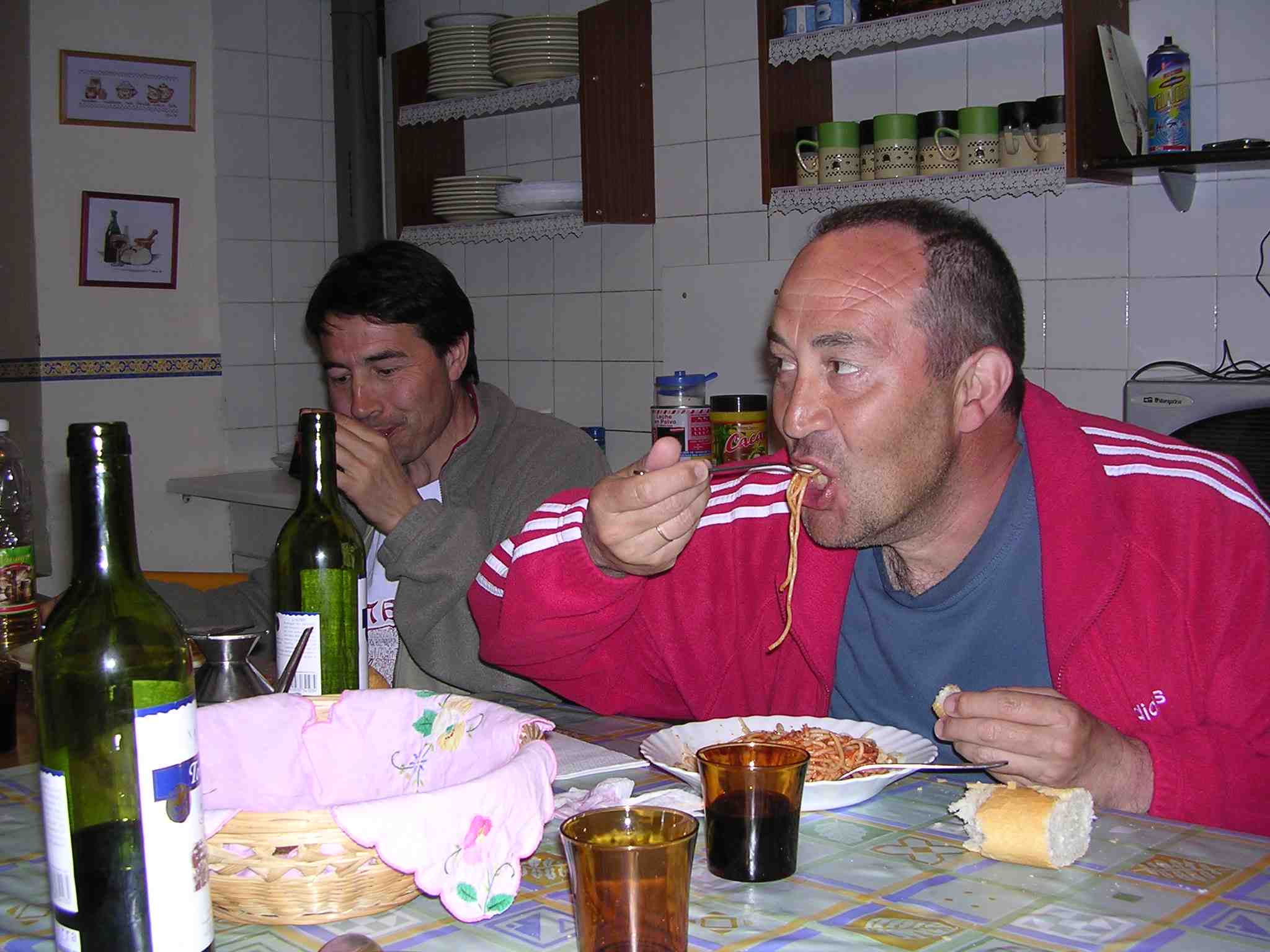 tortillas en el albergue de Torres mientras nos cae un nuevo