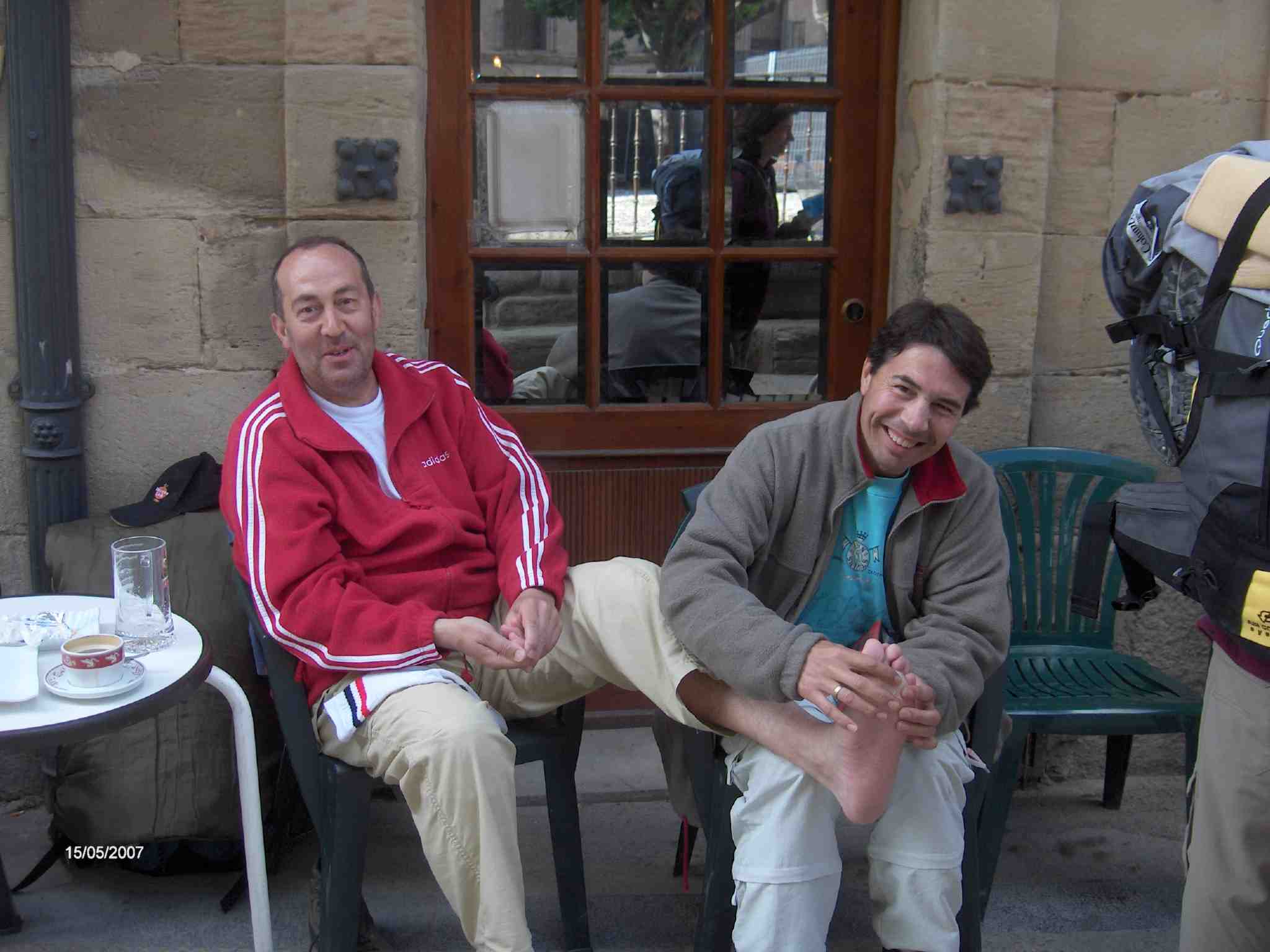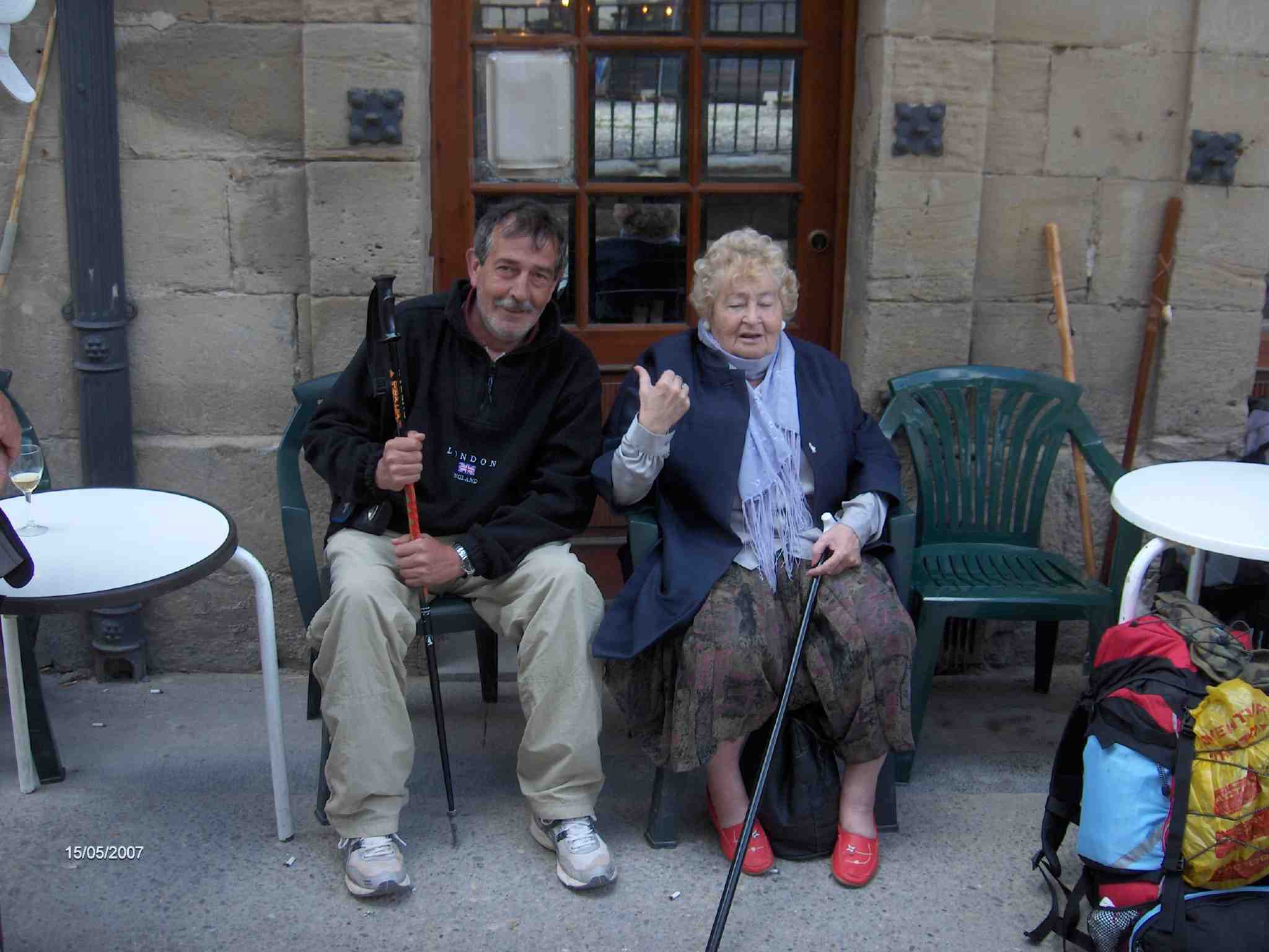 peregrinos que nos saludan a su paso por la terraza. El matrimonio