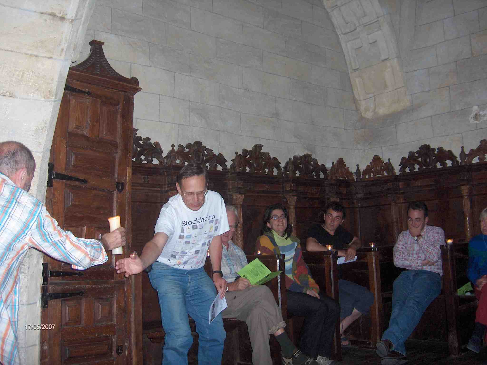 peregrinos en muchos casos, la escasa luz del cirio encendido, el