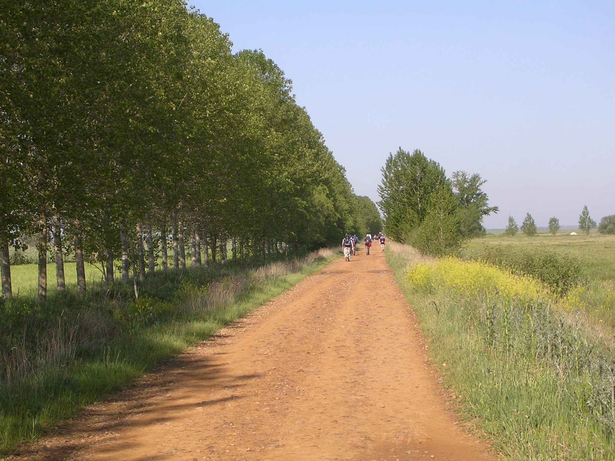 peregrinos que caminan con lentitud. El sol aprieta y nos hace sudar.