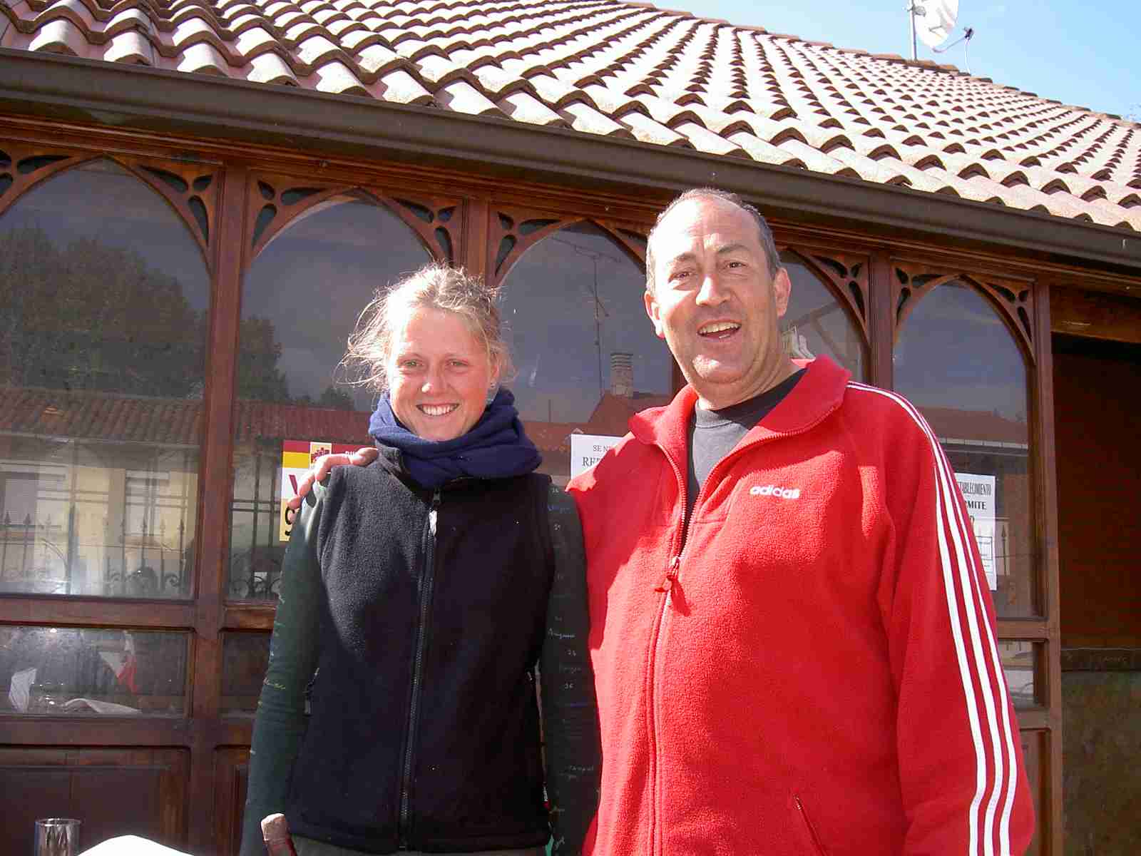 amigos húngaros, nos están esperando para comer en un bar del Camino.