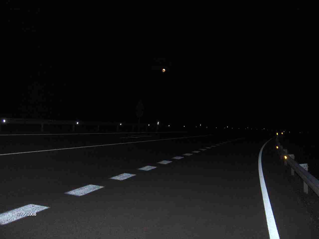 la carretera en busca de algún hostal me voy alejando del pueblo. Camino a buen ritmo a la luz