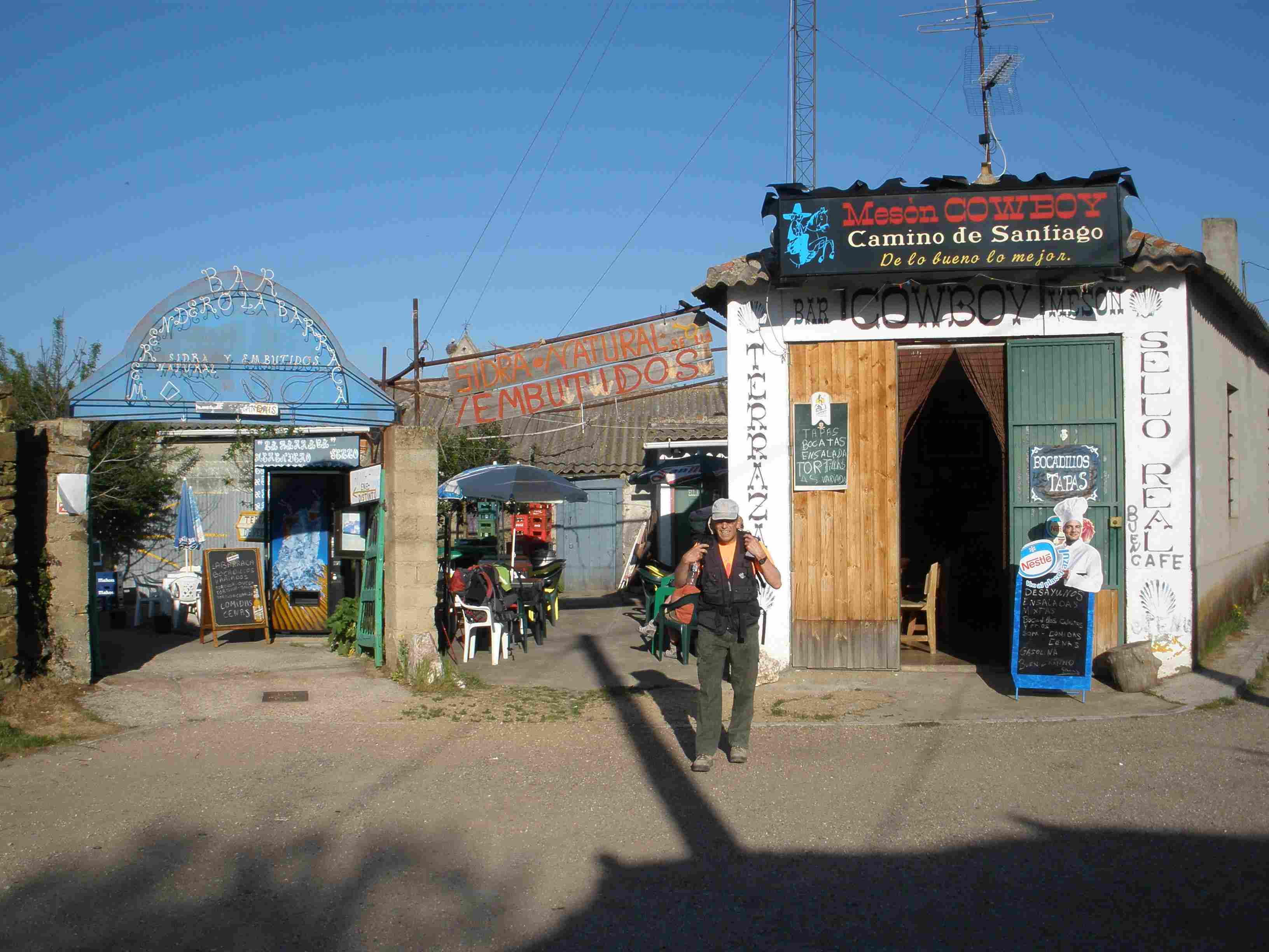 de cecina, queso, chorizo, y algunas cervezas mientras veíamos pasar a algunos peregrinos en
