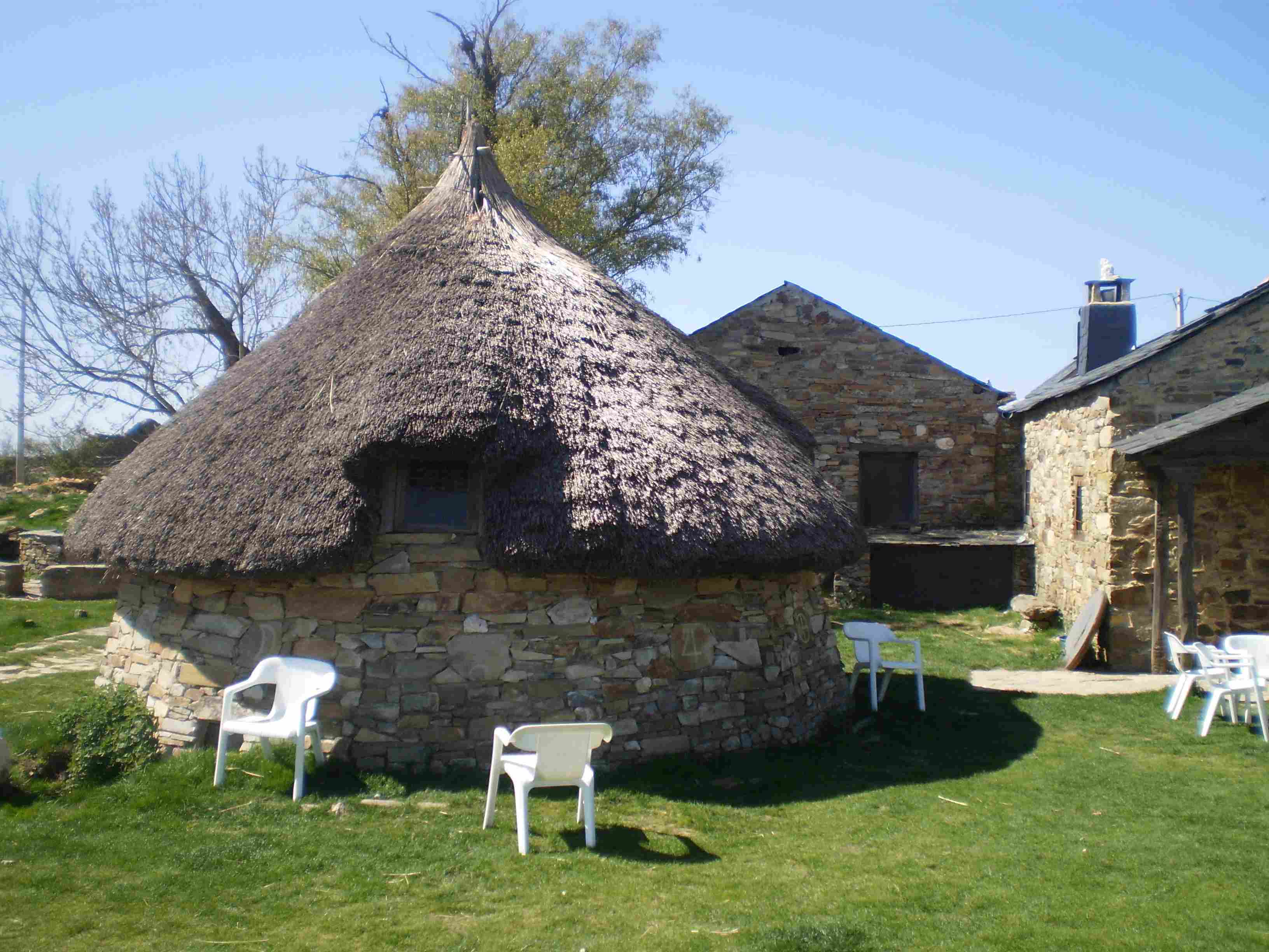 sentamos en una zona verde al lado de una palloza que tantas